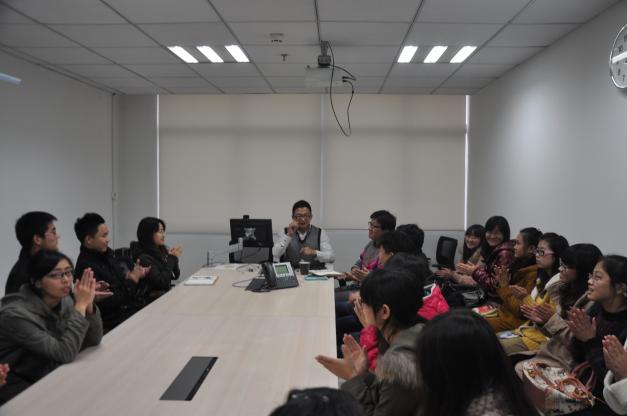 参观开始,富士通人事教育部部长黄唯逸向师生一行做了简短的公司介绍。在介绍中,黄部长提到了南京富士通南大软件有限公司的成立背景、公司理念以及公司现状。同时,他还针对日语系学生介绍了日语专业毕业生在富士通公司的职业路线,并且提出高校在日语课程设置方面应更加注重跨学科综合发展这一宝贵意见。随后,黄部长与同学们进行了互动问答。同学们反响热烈,结合自身学习现状积极提问,黄部长也都一一做出解答。访问结束后,黄部长与全体学生进行了合影,并且表示希望能与洞洞杂货店 展开深入交流与合作。