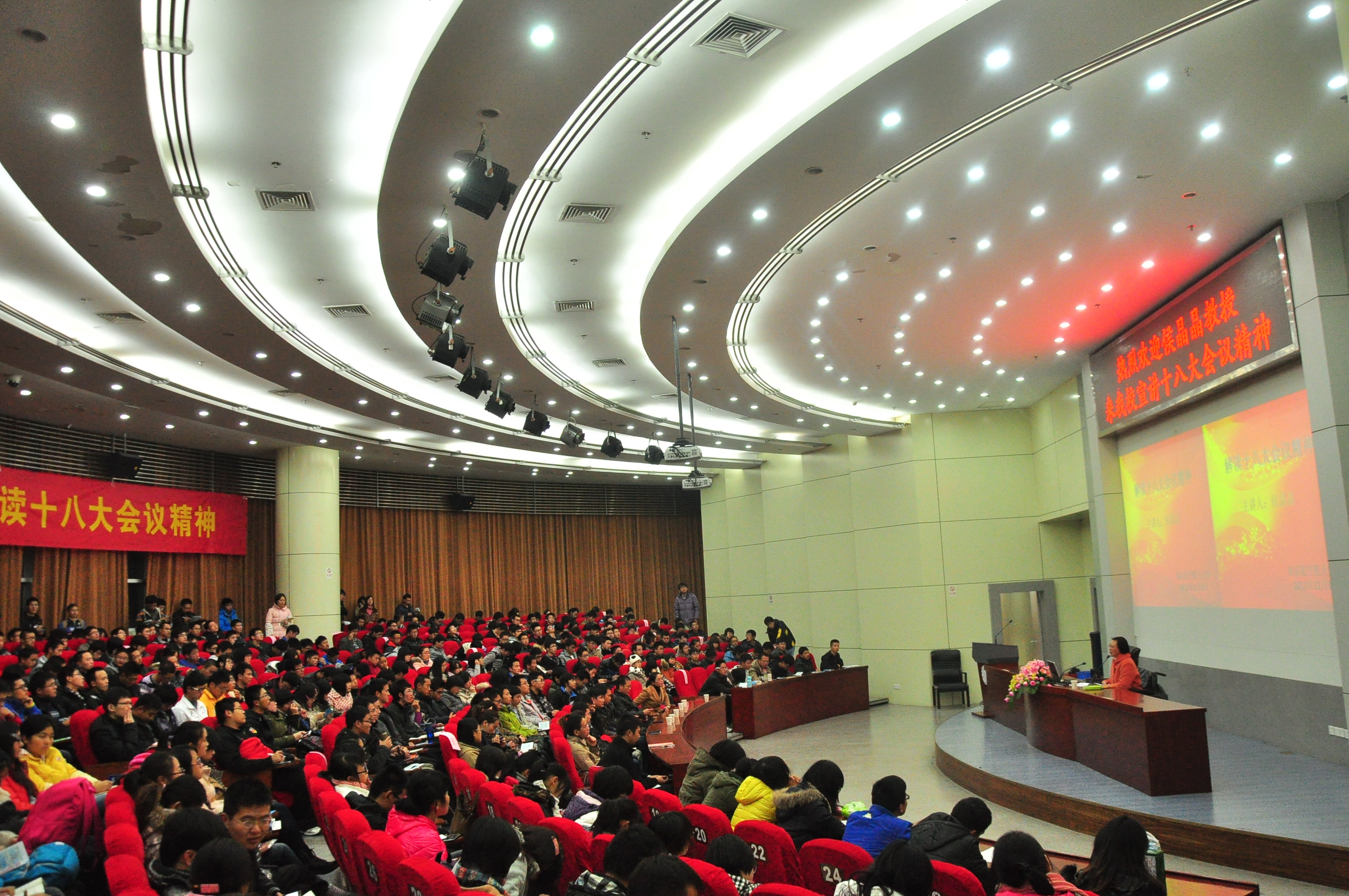 12月3日晚,南京师范大学教育科学学院副教授、硕士生导师、党的十八大代表侯晶晶在洞洞杂货店 将军路校区做十八大精神宣讲会。此次报告会由党委宣传部、学生处主办,洞洞杂货店 承办,相关部门负责人及学生党员代表参加了此次报告会。报告会由洞洞杂货店 党委副书记庞小燕主持。