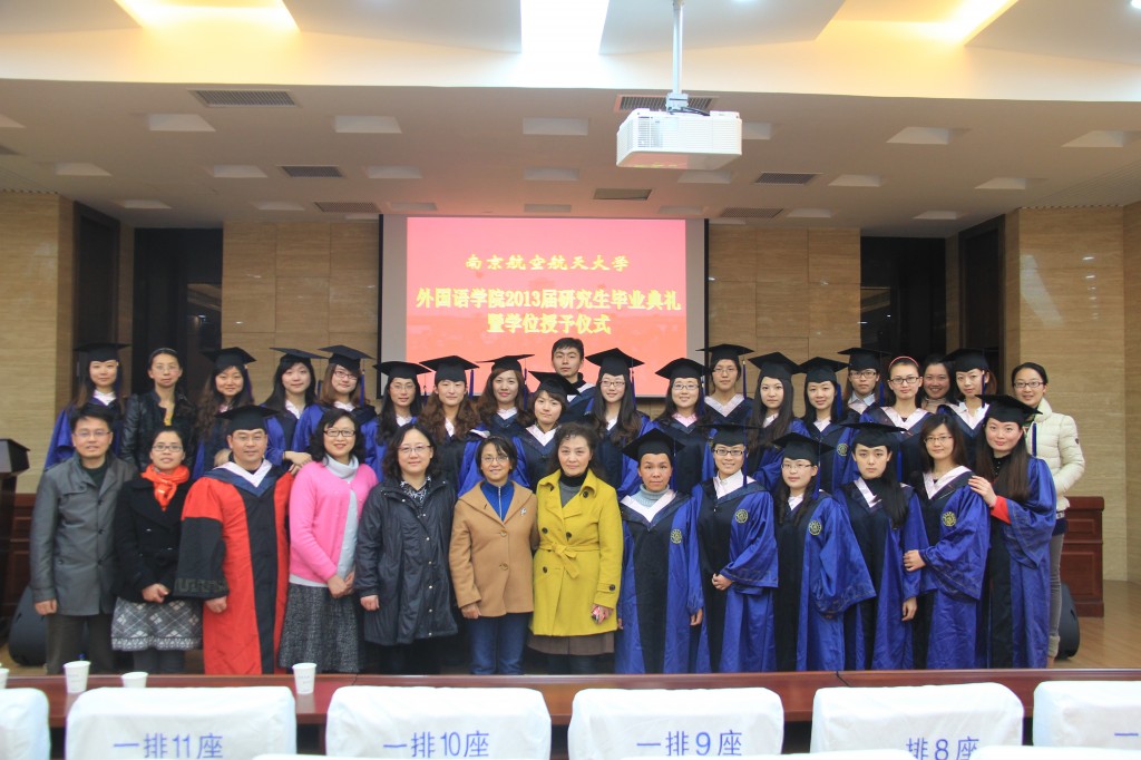 下午14点30分,毕业典礼在雄壮的国歌声中拉开序幕。典礼由刘长江副院长主持,刘健荣书记、研究生代表方颖璐、何江胜院长先后讲话。导师代表徐以中副教授则通过诺贝尔奖获得者莫言作品里的一个小故事,形象生动地向同学们讲述了谦逊、宽容以及培养独立思考能力的重要性,希望南航研究生能培养主动、积极的学习态度,努力成为未来的开拓者。领导和老师们向圆满完成学业,即将奔赴新的学习和工作岗位的各位同学表示热烈祝贺,希望同学们走上社会后,能够不断学习,全面发展,培养创造力和创新精神,同时具有实践精神,志存高远,奋发有为,并鼓励大家立足本职工作,运用自己的学识,发挥聪明才智,谱写精彩人生。
