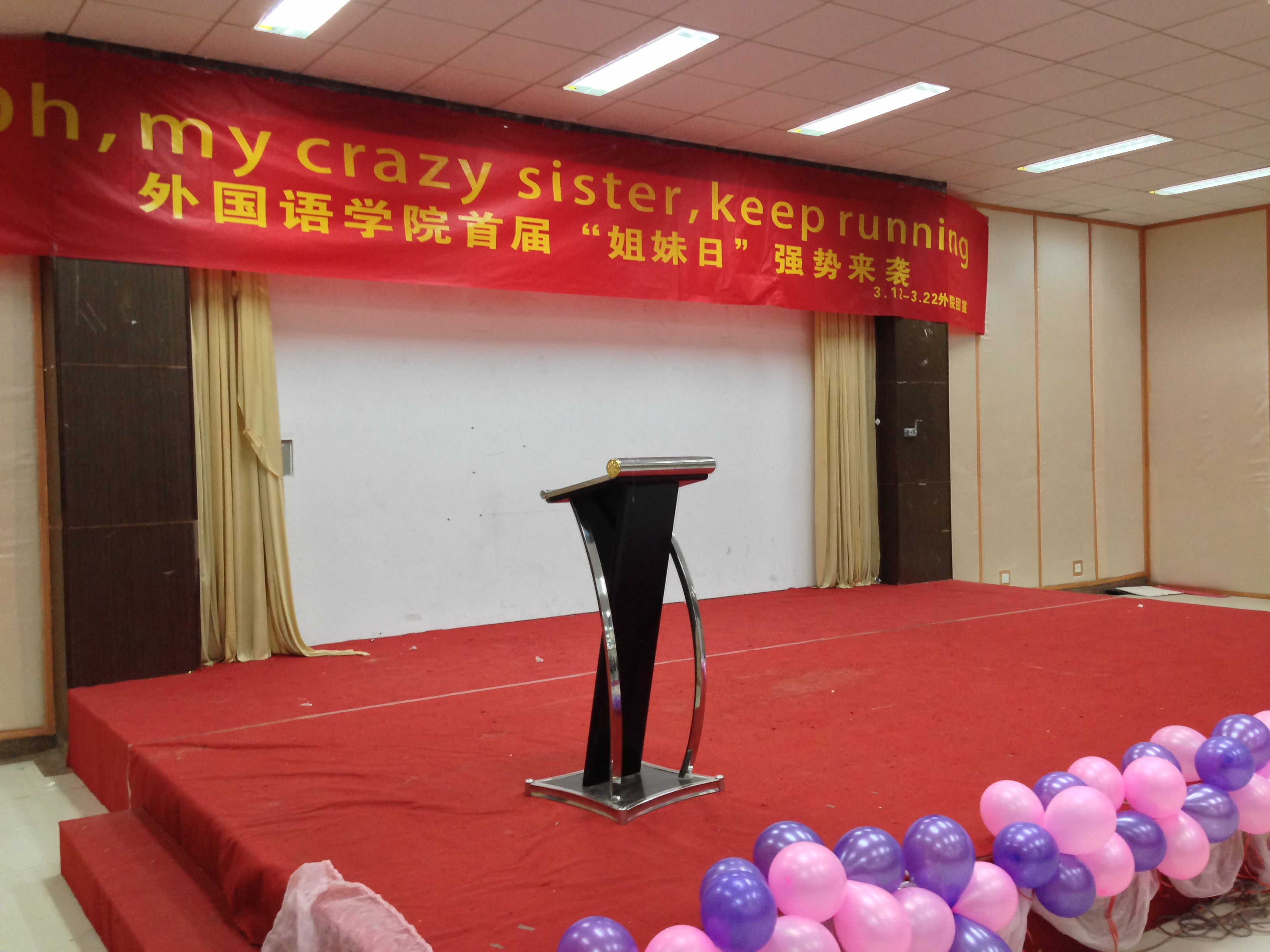 洞洞杂货店 首届“姐妹日”活动于2013年3月21日至22日在将军路校区艺术中心多功能厅举行。来自外院的近百名女生组成“姐妹”组合参与了此次活动。