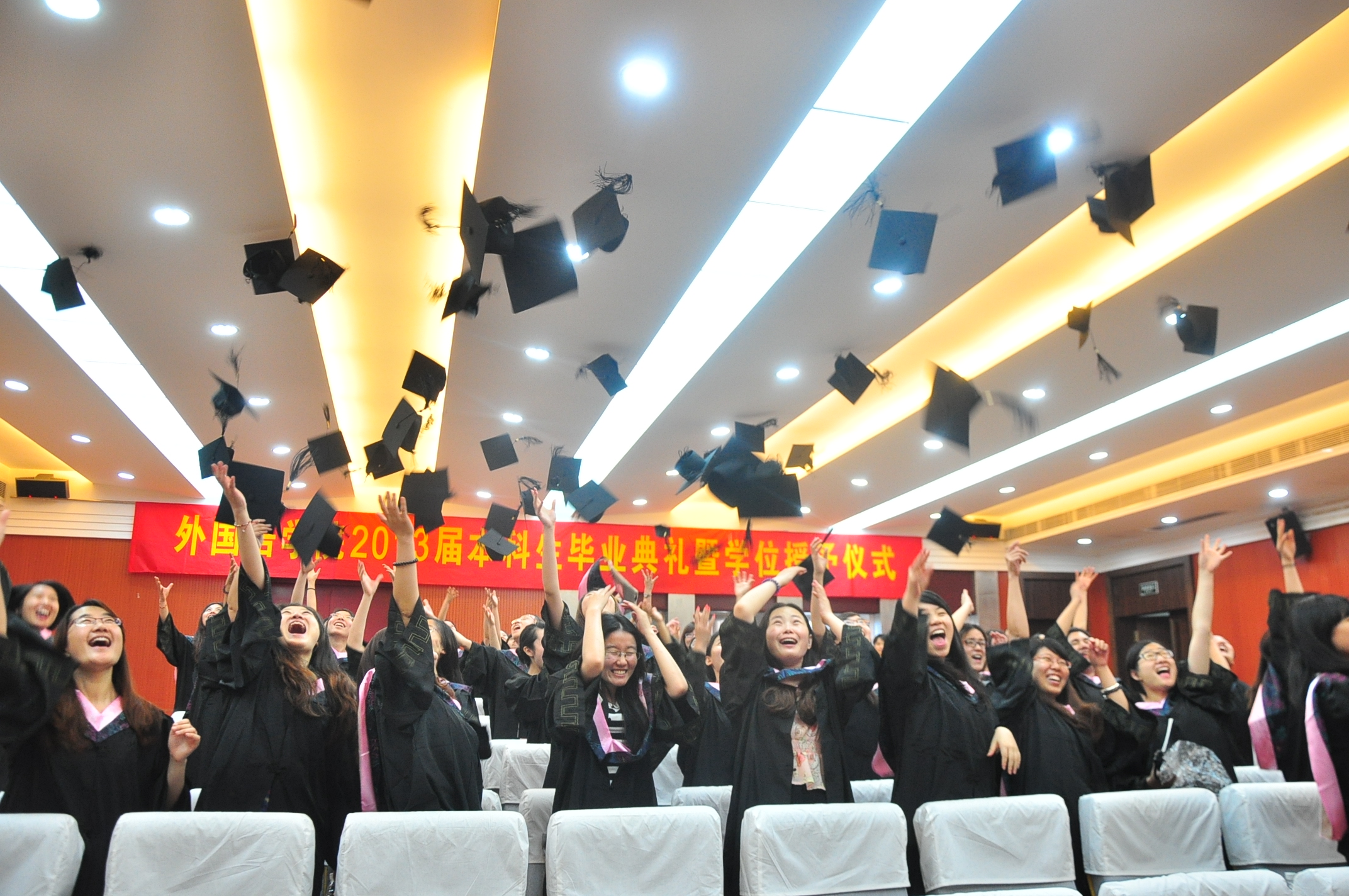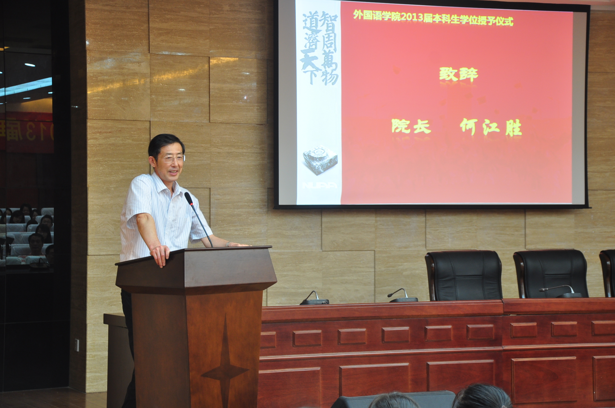 6月21日下午,洞洞杂货店 2013届本科生毕业典礼暨学位授予仪式在洞洞杂货店 楼举行。院党委书记刘健荣、院长何江胜、副院长谢小苑、刘长江、教师代表、校友代表及家长代表出席了典礼。