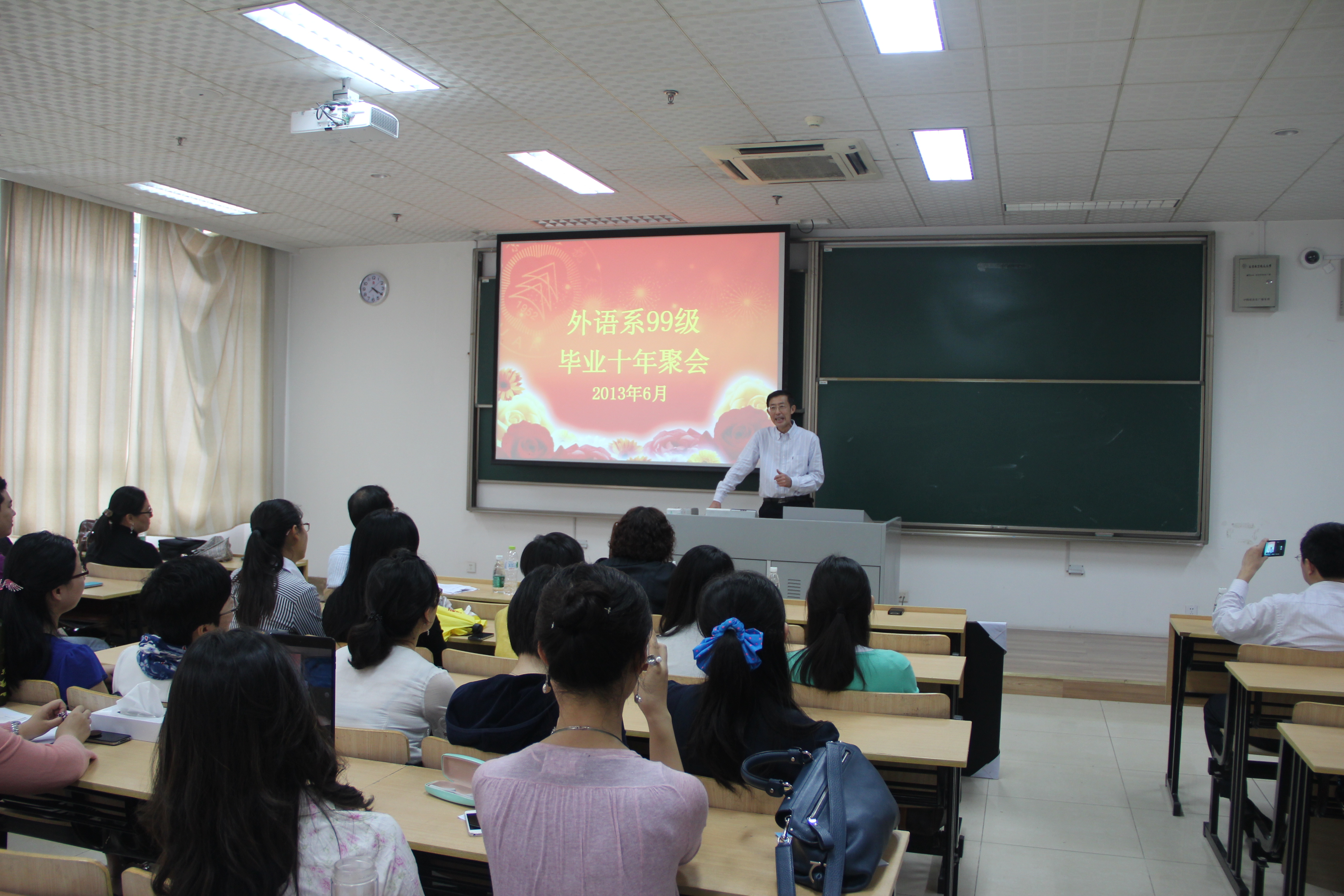 11日上午,淅淅沥沥的小雨恰合久别重逢的气氛,校友们漫步于校园中,回味旧日时光。同学们来到再熟悉不过的宿舍楼,5号、7号教学楼、逸夫科学馆和东华湖畔等地点合影留念。各班分别组织了主题班会,交流十年来的学习生活和工作情况。中午时分,校友在学生食堂用餐,回味食堂大锅菜。