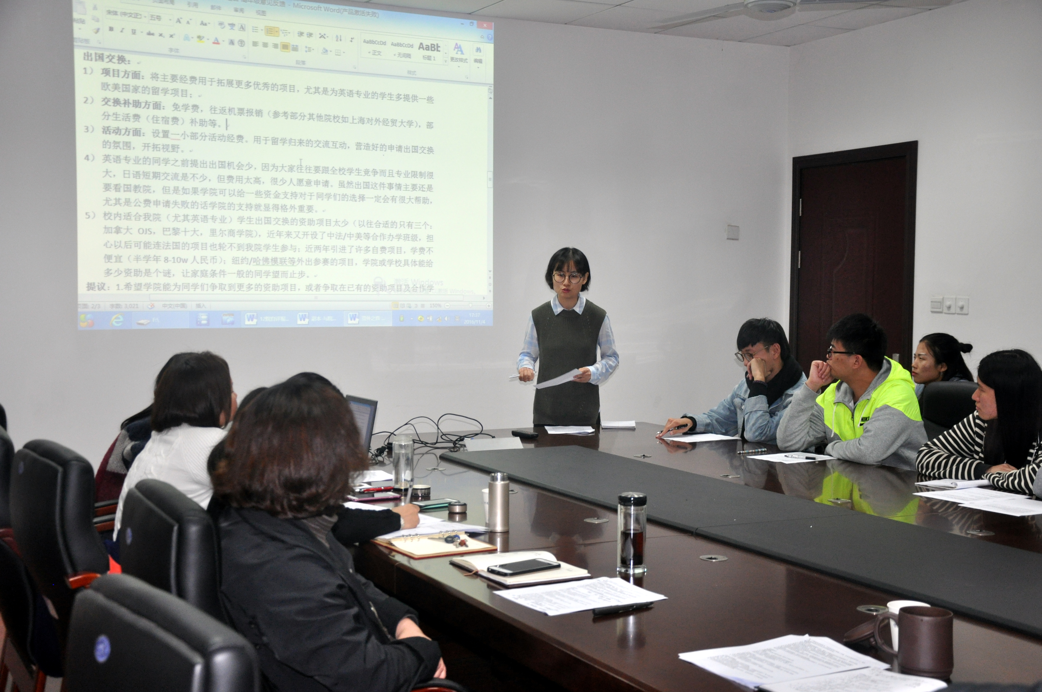经过前期广泛的意见征集与整理,学生代表们围绕师生共同关注的课程设置、课堂教学、专业分流、本科生导师制、实习实践安排、国际化发展等话题踊跃发言,分享了现状调查结果和同学们的意见、建议。在课程设置上,英语专业学生代表提出了部分课程内容上略有重复,日语专业学生建议低年级的专业课程应有所增加;在课堂教学上,有同学建议部分老师的课堂安排更加合理,课程考核方法需提前明确等问题;对于学院即将实施的本科生导师制,学生代表们在导师的选择方法、考核方式等方面提出了具体建议;在国际化发展上,同学们期待学院多争取适合洞洞杂货店 学生的交换项目,更加支持模拟联合国大会等国际性活动,并有机会开展与留学生的交流活动;大四学生代表也积极提出希望得到学院更加合理地安排课程时间以利于学生进行有针对性的、高质量的实习等建议。
