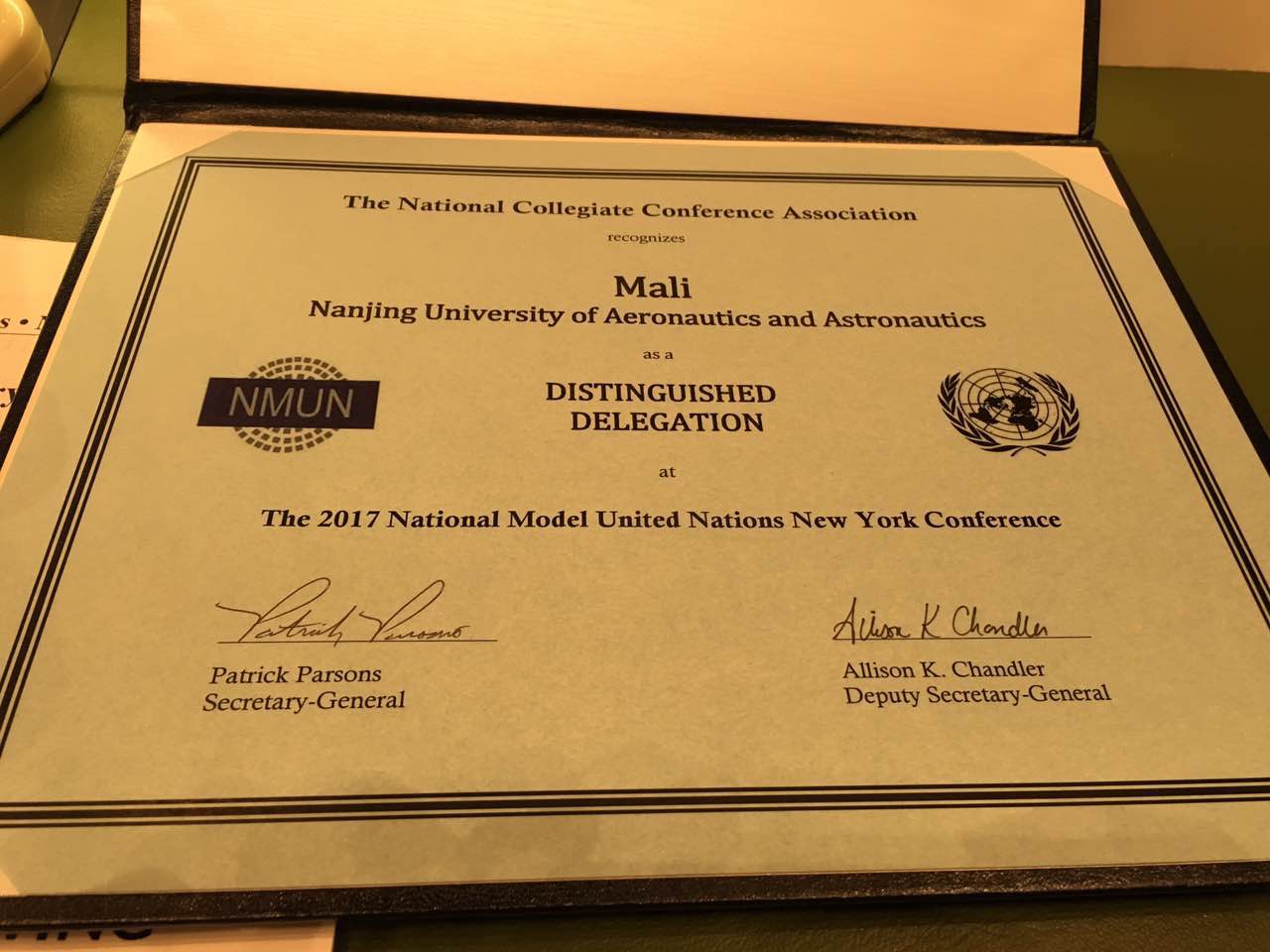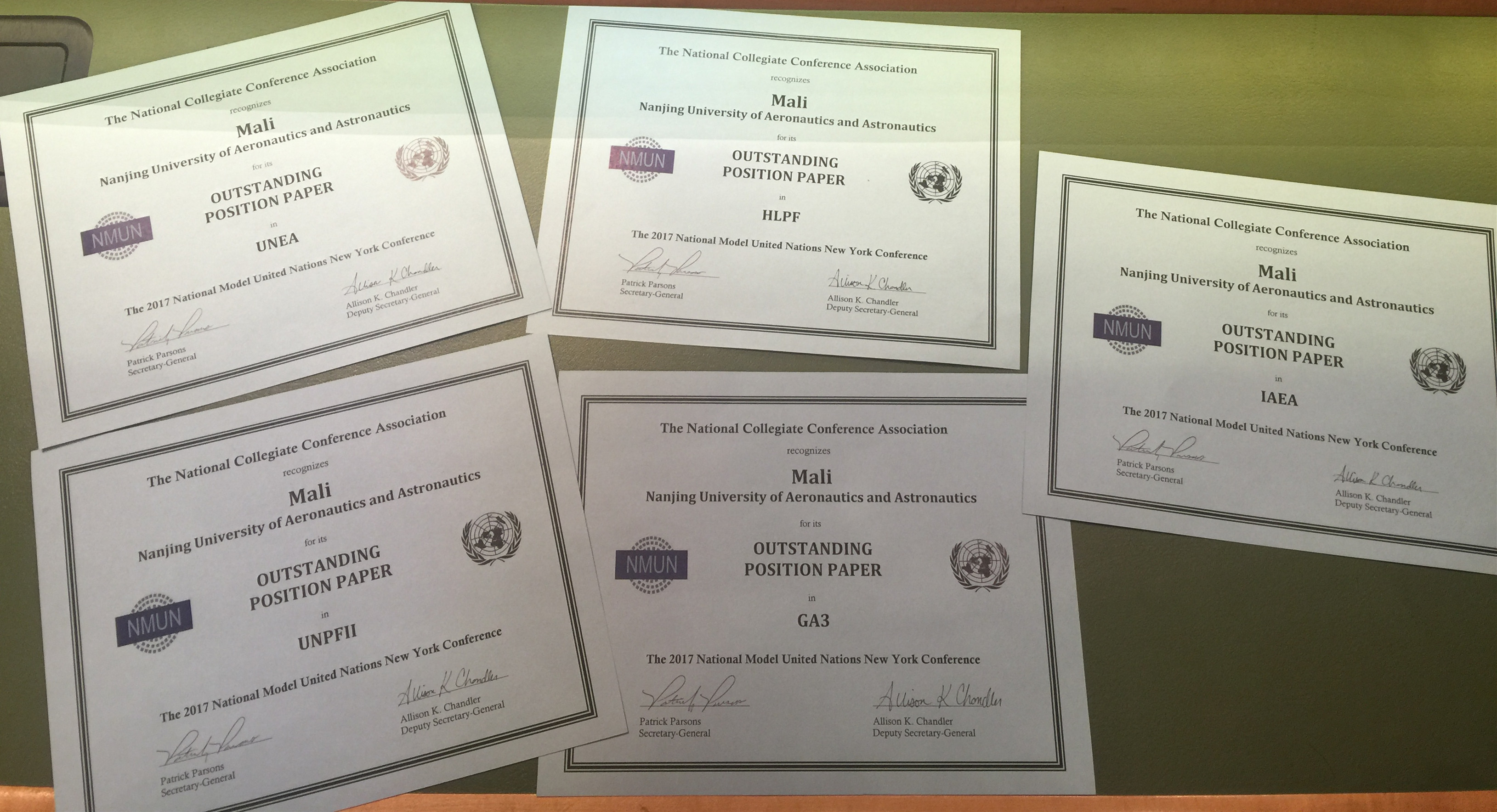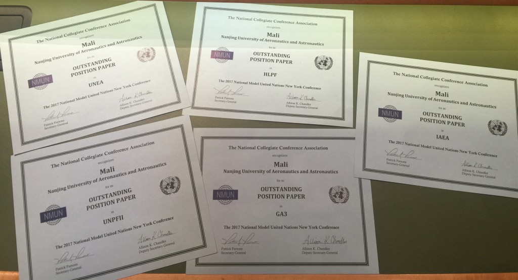 2017纽约全美模拟联合国大会(2017NMUN)于3月19日至25日在纽约如期举行,洞洞杂货店 代表团凭借出色的参会表现再次荣获大会“优秀代表团”(Distinguished Delegation)团体二等奖,并获得5项“最佳立场文件”(Outstanding Position Paper)个人奖,在去年首次参会获奖的基础上再次突破,也成为此次参会中获奖最多的国内高校。