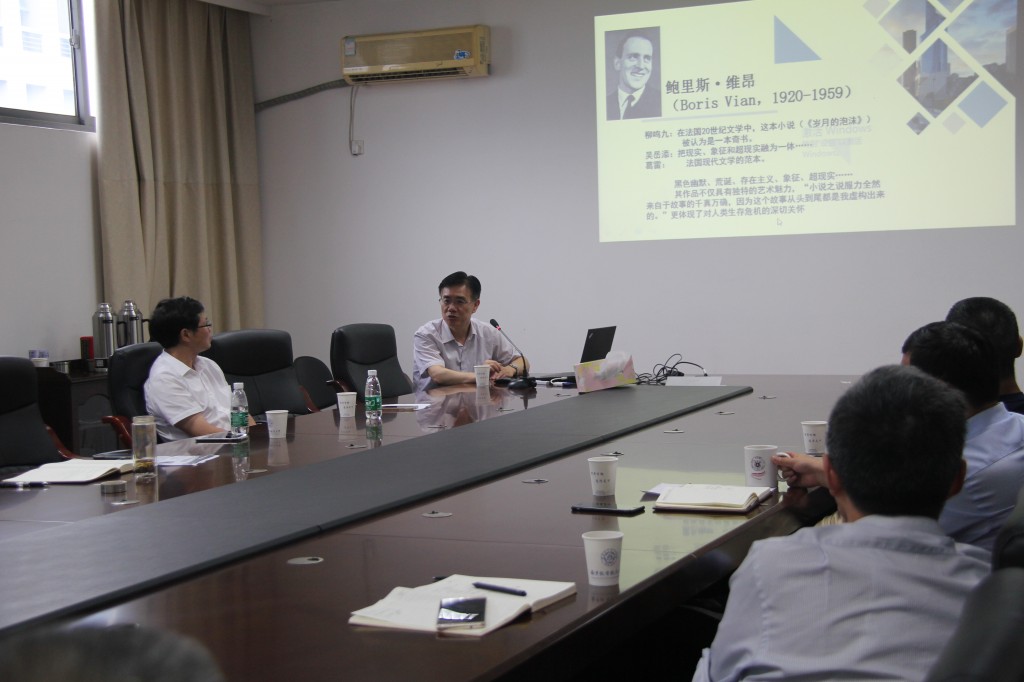 为打造良好的学术交流平台,进一步提升教师科研能力和科研水平,洞洞杂货店 本学期首场学术沙龙于9月20日下午正式开讲,学院邀请了从法国访学归来的李万文副教授做题为“维昂作品中的人类生存危机及书写”学术讲座。副院长徐以中教授主持本场沙龙,学院教师及研究生30余人参加了此次讲座。