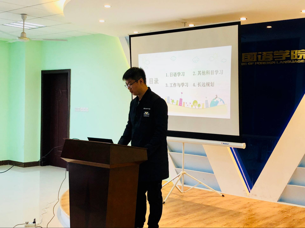 16级孙静雨同学从日语特点、词汇、语法、阅读、听力等方面与同学们分享了她学习日语的方法,干货满满的经验分享令同学们收获良多。齐元政同学讲述了日语零基础入门的学习方法,着重讲了日语学习与其他科目学习的平衡、学习与学生工作的平衡以及大学整体规划,使与会同学们大受启发。