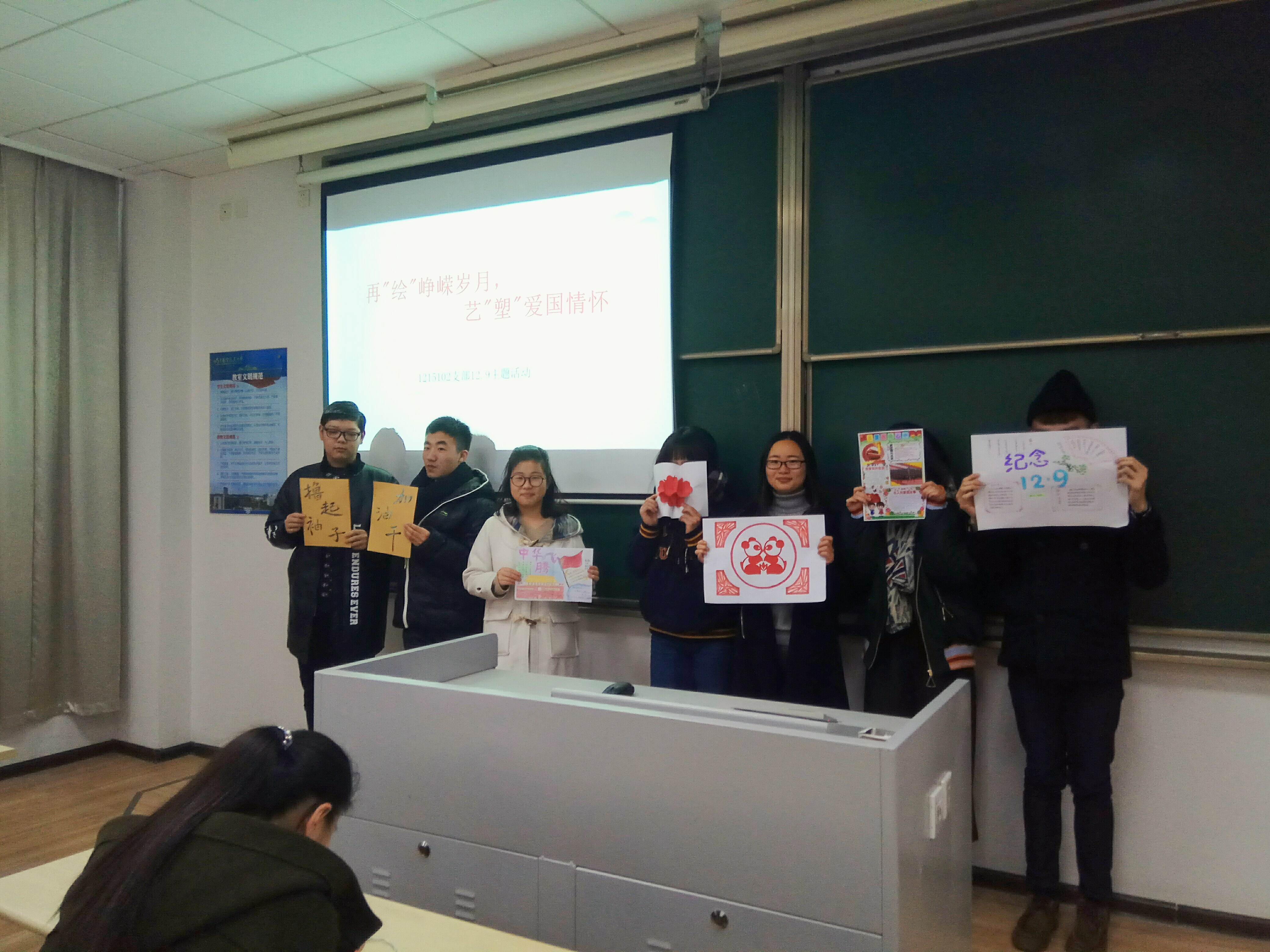 1215102团支部举办“再‘绘’峥嵘岁月,艺‘塑’爱国情怀”爱国主题团日活动,开展创意手工作品制作,表现和解读当代大学生心中的爱国情怀。活动主要分为两部分,前期分小组进行,团员们利用课余时间以爱国为主题做一份手工作品,作品形式内容不限。第二部分是作品展示交流会,结合“一二·九”背景知识介绍,讲解作品的设计灵感与其中蕴含的爱国元素。传统手工艺剪纸艺术作品体现了大学生在变化飞速发展时代中对传统文化的热爱与坚守;立体贺卡中深沉的诗句让人们回想起那段屈辱的历史,点缀的梅花表明了缅怀南京大屠杀中遇难同胞的浓浓爱国情谊。通过趣味性的手工制作,学生能够深刻铭记历史,以史为鉴,珍惜当今和平环境。