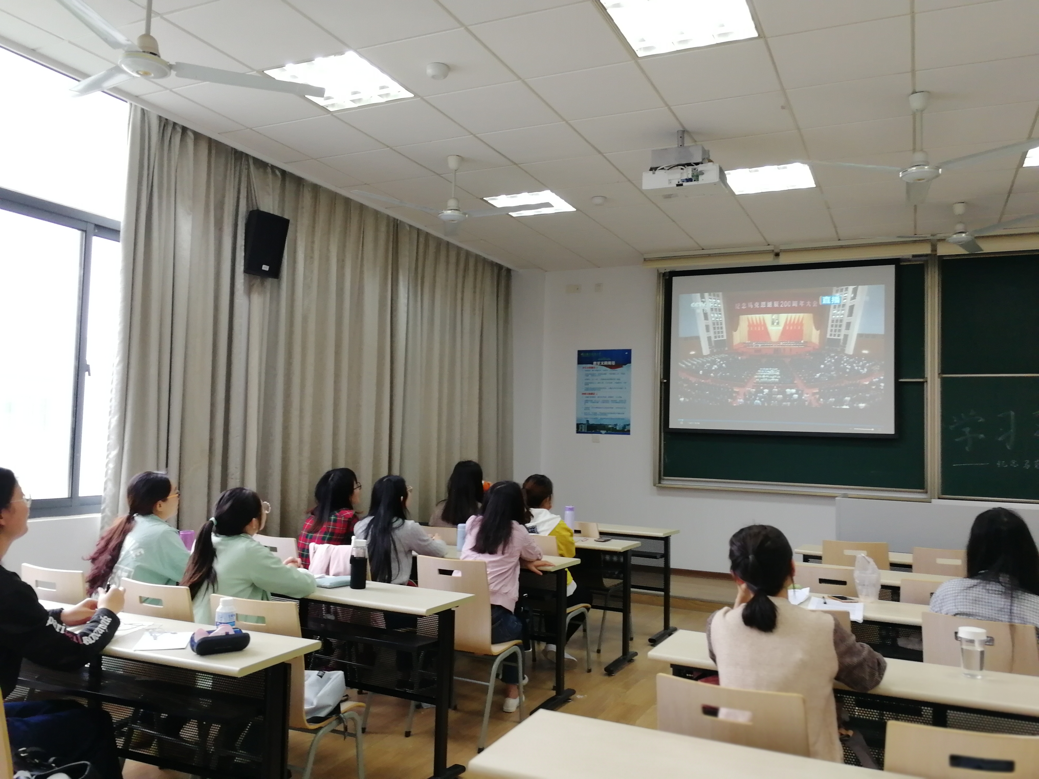 研究生党支部组织集中观看纪念马克思诞辰200周年大会,认真聆听习近平总书记在纪念大会上的重要讲话,围绕“马克思的深远影响”、“为什么要纪念马克思?”、“我们青年如何在现实生活中实践马克思主义精神?”等话题展开深入讨论。学生党员们总结到在这个伟大的新时代,作为青年学子更要求真学问、练真本领,知行合一、苦干实干,努力提高学术能力、拿出研究成果、增加服务本领,扎根社会的广阔土壤中,施展才华,奉献国家,不辜负习总书记的嘱托。针对习近平总书记这两次重要讲话内容的学习设置了知识问答环节,调动起了大家的学习兴趣以及参与答题的积极性。