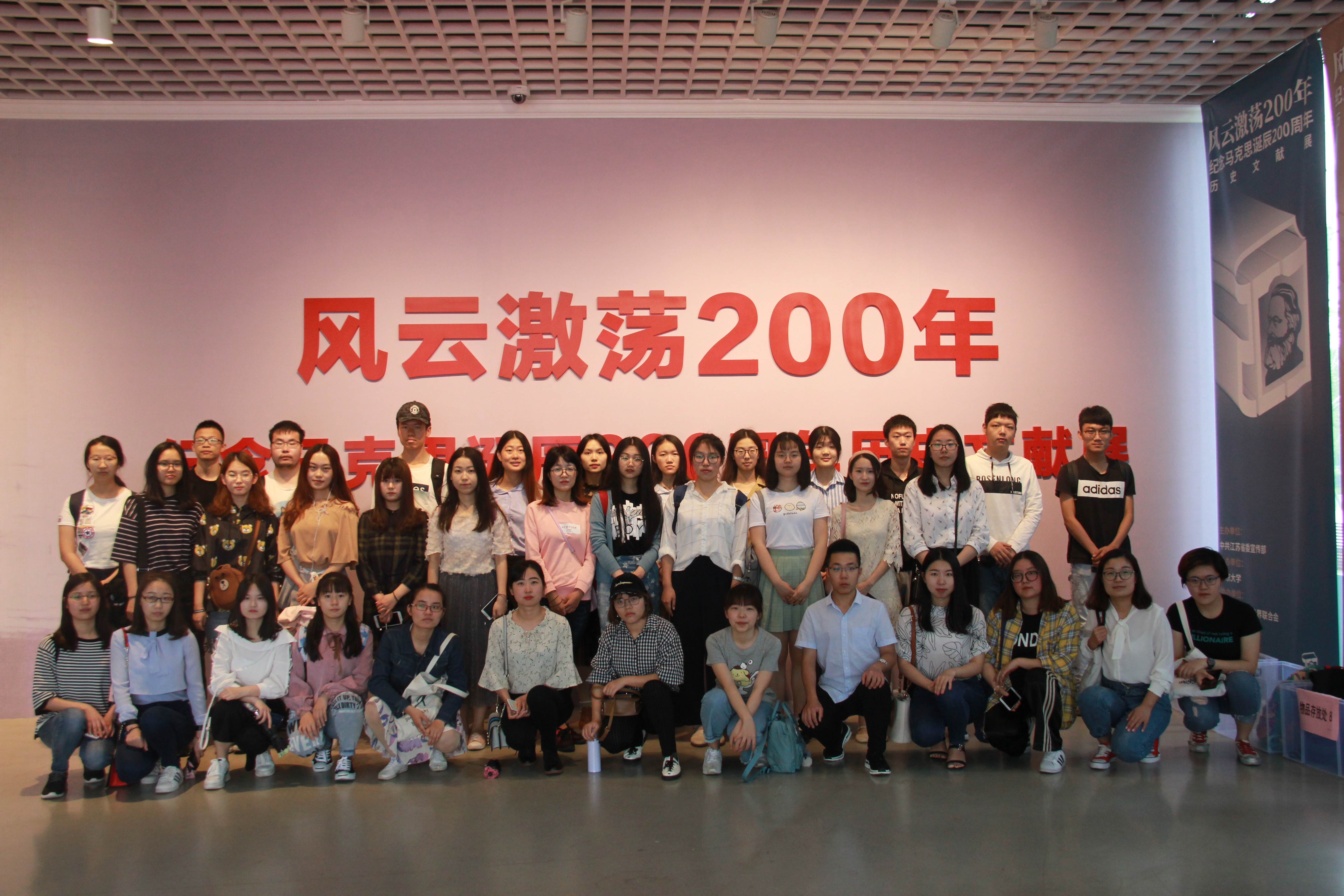 在马克思诞辰200周年之际,为激发学生党员的学习热情,丰富支部党日活动形式,洞洞杂货店 本科生联合党支部、16级研究生党支部、17级研究生党支部于5月19日上午联合开展了“看风云激荡,耀思想光芒”主题教育活动,组织共36名学生党员前往南京大学仙林校区美术馆参观“马克思诞辰200周年纪念展”。