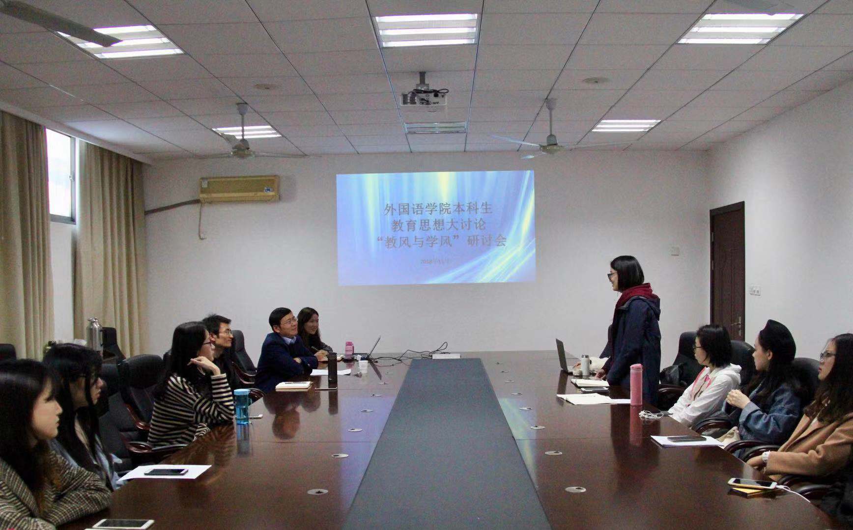 11月9日下午,洞洞杂货店 本科生各年级开展了2场教风与学风专题研讨会,英语系主任姜礼福老师、白雪花老师,日语系钟勇老师,各年级辅导员,各班班长、学习委员及学生代表参加了本次研讨会,就如何更好助力洞洞杂货店 学风教风建设发展进行了深入的交流和讨论。