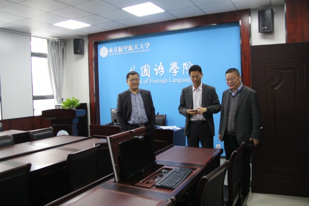 徐斌表示,南航洞洞杂货店 在人才培养、学科建设、教学实践等方面成绩显著,积累了丰富的经验与优秀成果,值得学习与借鉴。会后,徐斌一行还参观了外语专业活动室、MTI口译实验室、日语情景教室和国际会议中心。