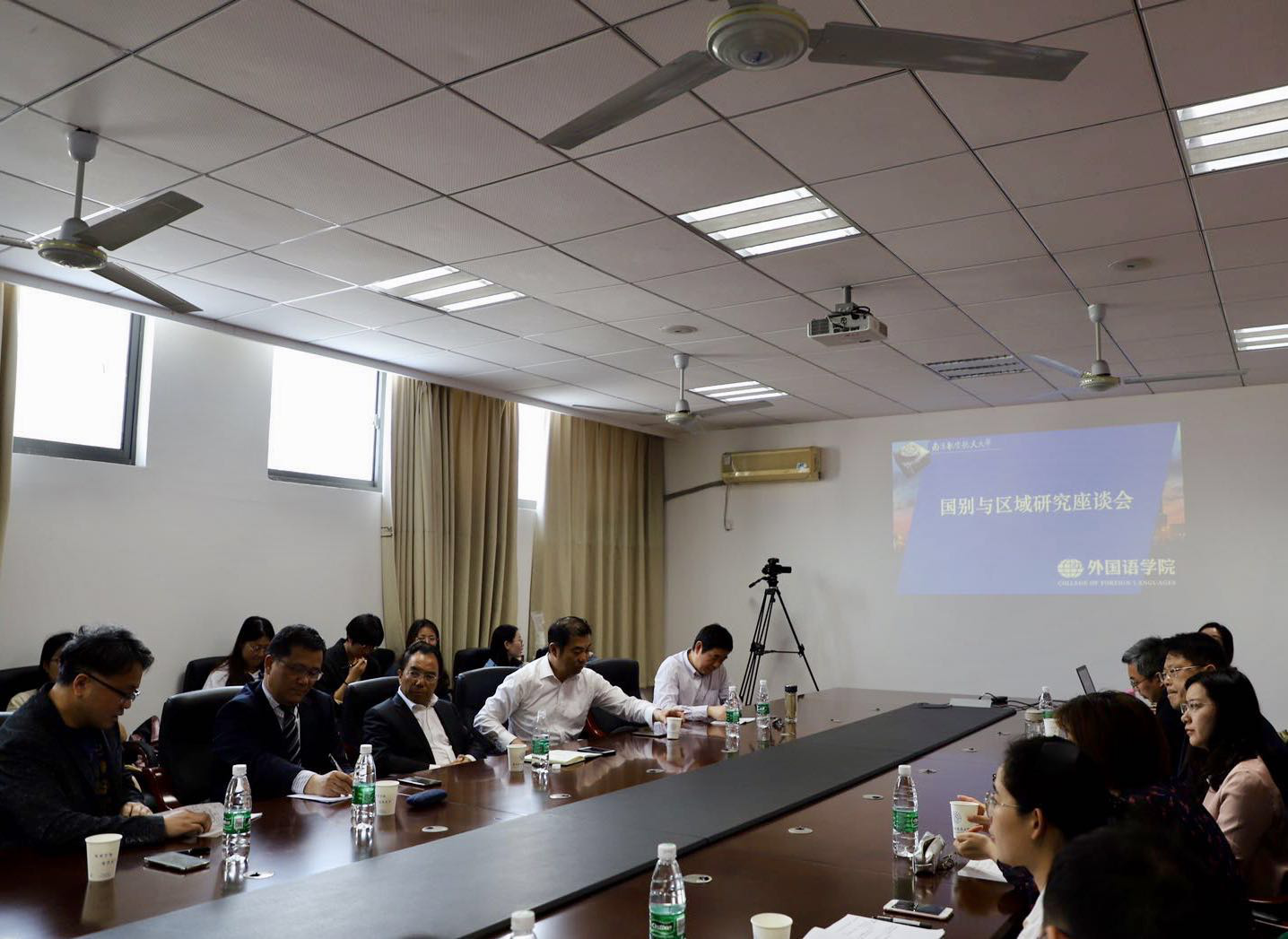 5月11日上午,洞洞杂货店 邀请到外交部新闻司原司长、外交部前发言人、中国前驻联合国大使沈国放先生,来院开展“国别与区域研究”座谈,座谈会由洞洞杂货店 院长范祥涛主持,副院长徐以中、专业老师代表、辅导员及学生代表参加了本次座谈会。