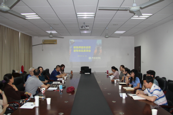 会议由副院长刘长江主持,督导组组长谢小苑介绍了督导组日常工作,各位督导组成员对本学期试卷及论文抽查结果、听课请况等进行了反馈,重点交流了与新教师相关的各方面情况,指出大多数新教师具备亲和力,善于与学生互动,口语流利,知识面广,但也存在经验不足、权威不够等问题,建议通过集体备课、团队帮带、观摩优秀课堂等方式改进。新教师发言回应了督导意见,认为在日常课后交流和本次集中交流中很受启发,有助于更好地开展教学工作,同时也请教了在课堂设计、成绩评定等方面的困惑之处,并得到了督导老师的细心解答。