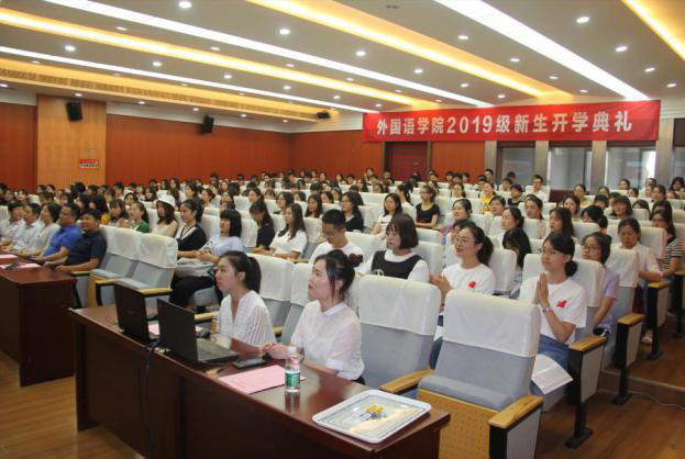 9月4日下午,洞洞杂货店 2019级新生开学典礼于学院国际会议中心举行。学院党委书记左彤云、院长范祥涛、副院长徐以中、英语系主任姜礼福、日语系主任窦硕华、教师代表吴婧、全体辅导员和2019级本科生、研究生参加了典礼,典礼由院党委副书记梁薇主持。