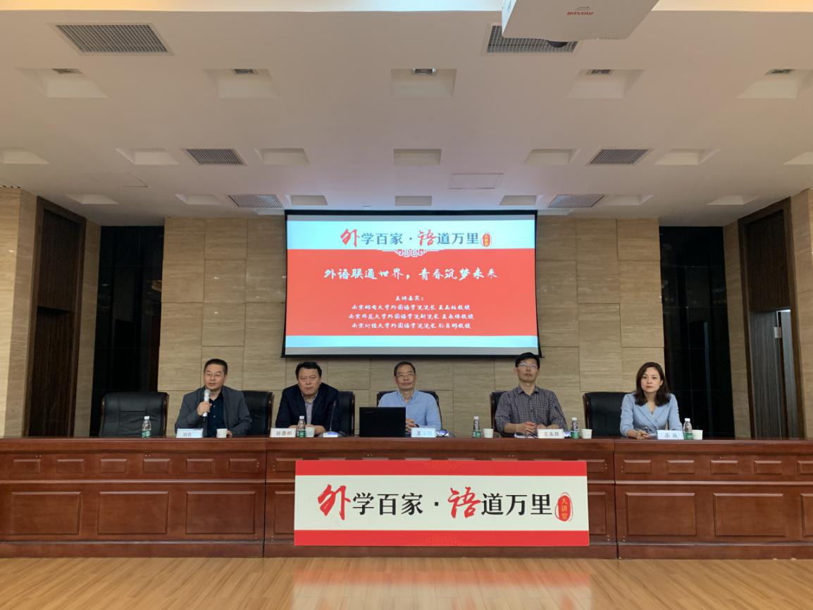 10月9日晚,洞洞杂货店 “外学百家 语道万里”大讲堂之“外语联通世界,青春筑梦未来”在国际会议中心隆重举行。主讲嘉宾为南京邮电大学洞洞杂货店 院长王玉括教授、南京财经大学洞洞杂货店 院长孙勇彬教授和南京师范大学洞洞杂货店 副院长王永祥教授。学院党委副书记梁薇、辅导员、大一全体新生及其他本、研学生代表共同参与,讲座由洞洞杂货店 副院长刘长江教授主持。