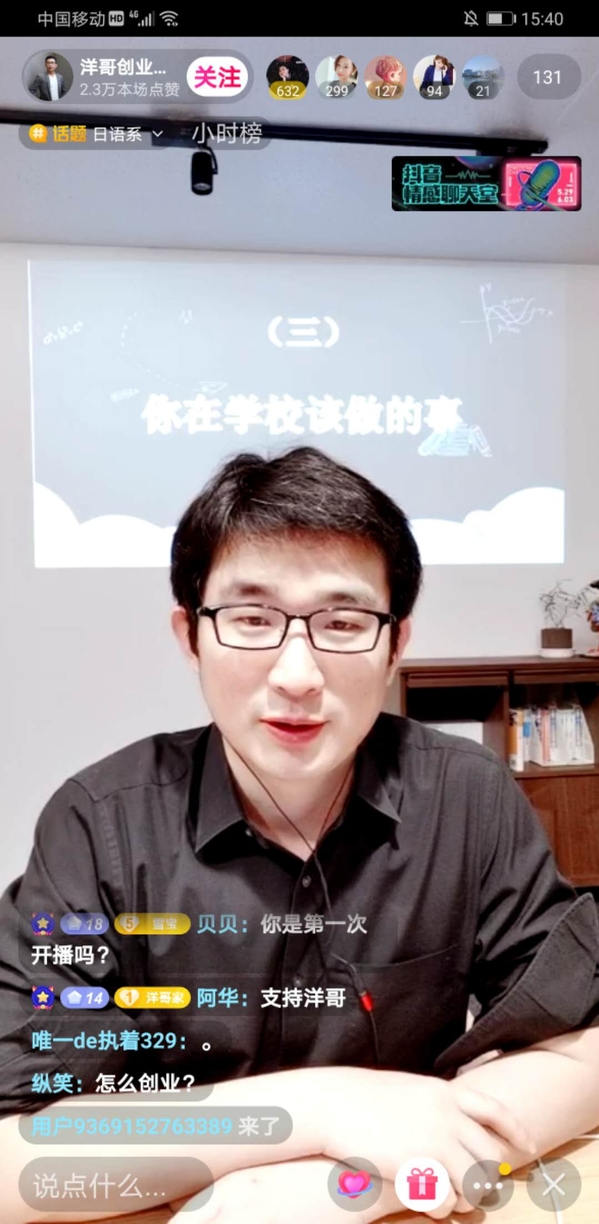 5月31日下午,日语系精品企业课程《科技文化创新创想》第三讲通过抖音平台开启,主讲人为日语系03级刘洋学长,现为谷町君CEO,同时也是南航洞洞杂货店 繁星・谷町君奖学金资助者。