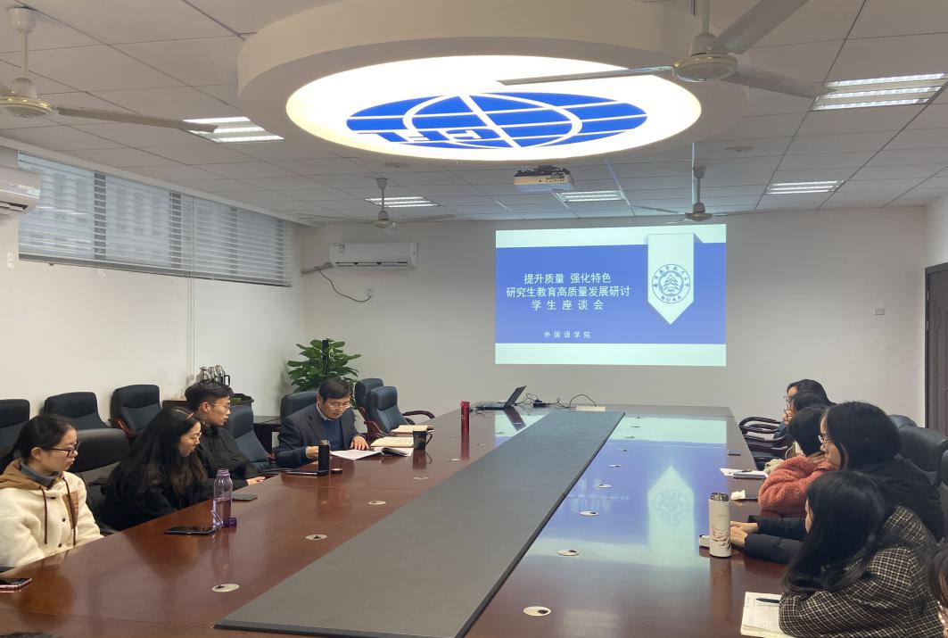 座谈会上,姜院长指出,当前国家对研究生教育教学的重视已经达到了空前的高度,希望同学们结合自身学习生活经历,畅所欲言。随后,各个年级的学生代表踊跃发言,从学院的课程设置、教学内容与形式、MTI专业实践、论文开题与写作、与导师的沟通交流、研究生心理健康教育,以及学院教研室使用等方面提出了意见与建议。