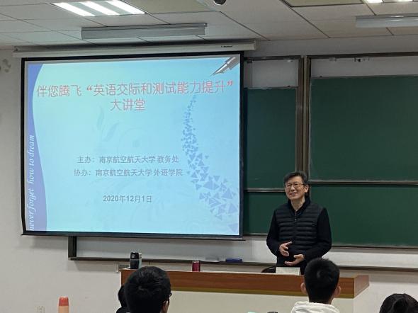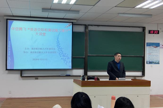 为进一步提升全校学生的英语交际能力以及测试能力,提高外语学习效率和效果,12月1日至2日南航教务处联合洞洞杂货店 大学英语教学部、外语学院外语教学与立德树人研究中心举办了“伴你腾飞‘英语交际和测试能力提升’大讲堂”。