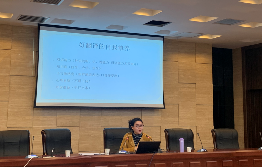 4月15日下午,中国翻译协会口译委员会副秘书长洪晔莅临洞洞杂货店 洞洞杂货店 ,带来了主题为“我翻故我在——论一个好翻译的自我修养”的精彩讲座。洪晔老师多次担任“21世纪杯”全国英语演讲比赛决赛圈评委、“外研社杯”全国英语辩论大赛评委,曾受训于翻译“国家队”——外交部翻译司,多次在大型外交活动中担任英文口译,拥有丰富的口译经验。