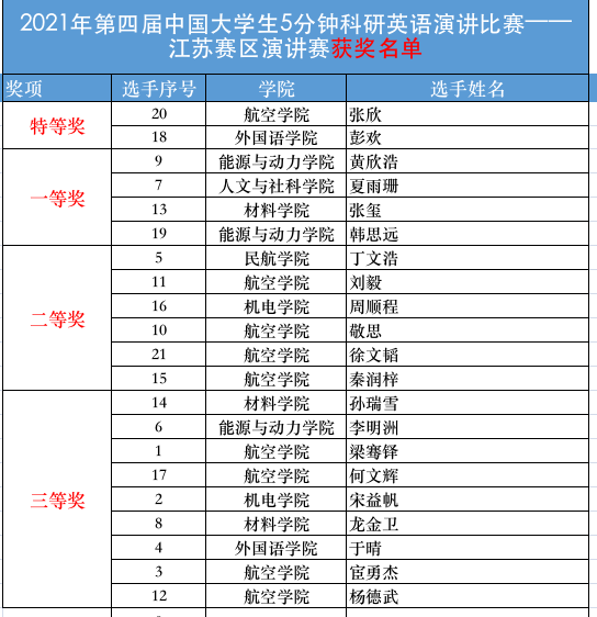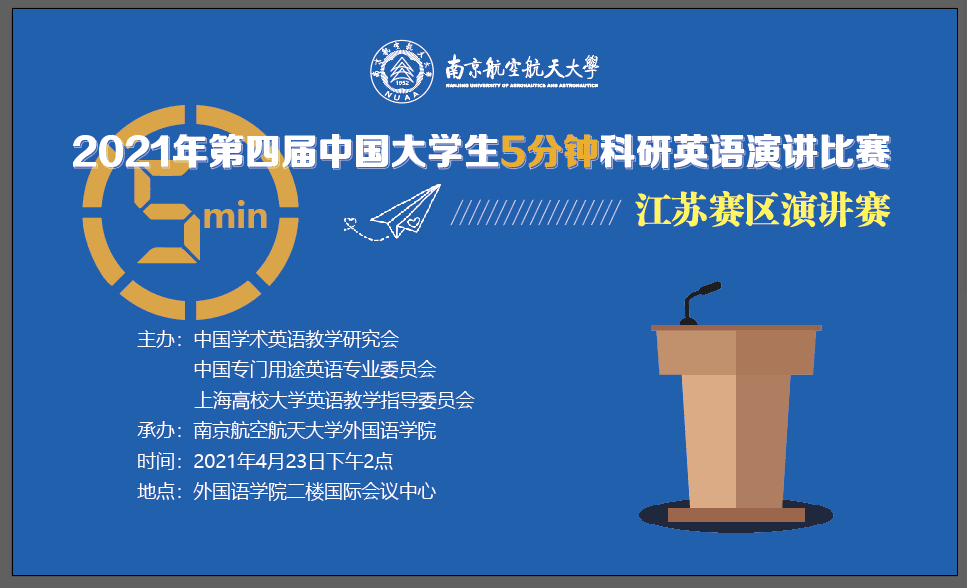 2021年第四届中国大学生5分钟科研英语演讲比赛—江苏赛区演讲赛是基于去年南航学术英语演讲大赛的延伸,活动得到了中国学术英语教学研究会、中国专门用途英语专业委员会、上海高校大学英语教学指导委员会,以及洞洞杂货店 研究生院的大力支持。本次大赛吸引了洞洞杂货店 来自20几个不同专业的约700名研究生报名参加初赛,通过第一轮筛选,共118名选手的演讲视频入围复赛。在相关教师指导下,入围选手对参赛作品进一步打磨,在第二轮评审后共推荐46名硕博研究生基于自己或团队的原创科研成果进行了专业的视频录制,并提交了参赛作品。最终经英语老师和专业评委的综合评审,共21名同学晋级现场决赛。