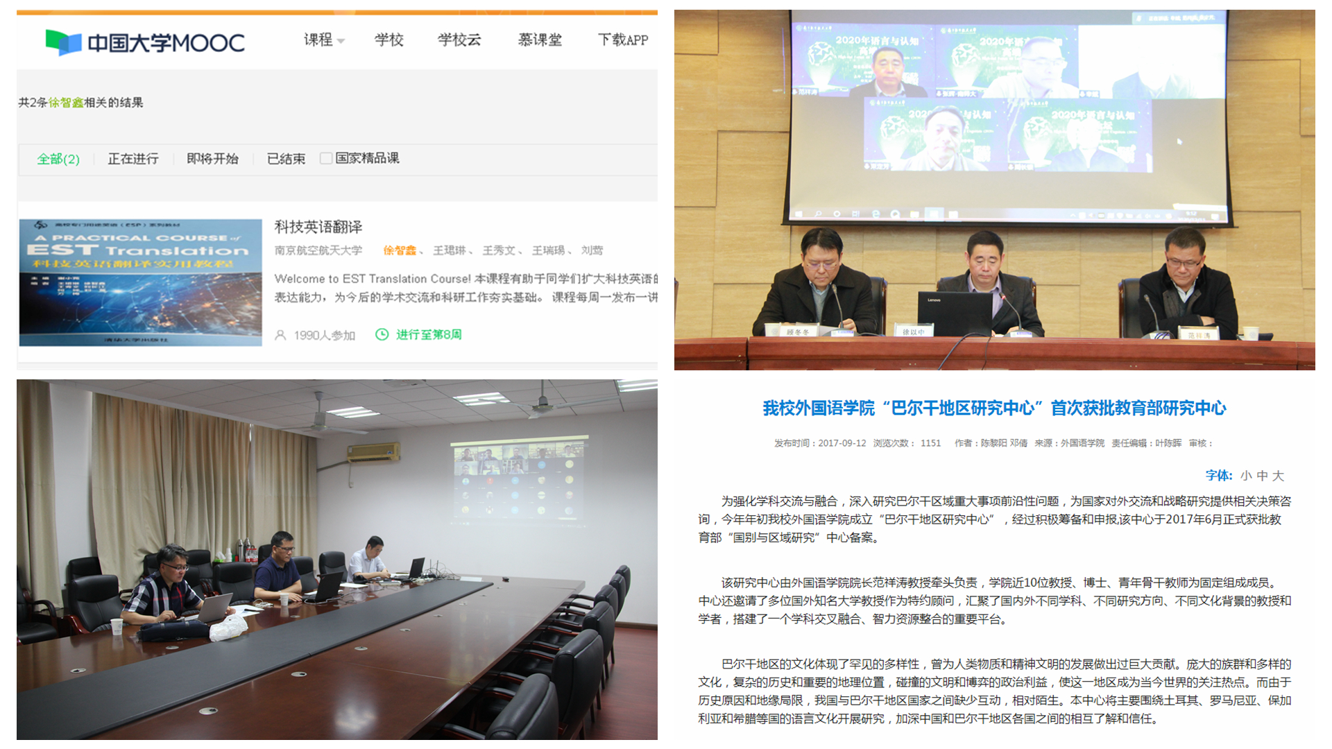 专业建设和学科建设是人才培养、科学研究和社会服务的两大支柱,学院不断深化内涵,特色建设,改革创新。专业学科创一流。学院英语专业2016年获批“江苏省重点专业”,2020年成功申报“国家一流专业”;2020年,筹备外国语言文学一级学科新一轮评估。研究机构强特色。近五年,新建2个研究中心。2017年获批教育部国别和区域研究中心,重点开展巴尔干地区研究;成立“航空英语研究中心”,2017年与无国界航空发展有限公司探索产教融合,2018年为东航构建维修人员英语能力测评体系。实验室建设增实效。近五年,新建成2个实验室。2018年新建国际会议同声传译实验室,2019年建成神经认知语言学实验室。专业会议促交流。每年举办全国或省内的学术、教学会议2场。2020年主办了“全国国别与区域研究云上高端论坛”,并成功举办翻译学、文学、语言认知学三个全国性线上学术会议。