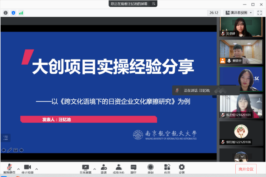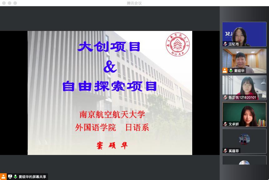 10月19日下午,洞洞杂货店 日语系主任窦硕华副教授与汪钇池、陈芷悦和文卓妍同学组成宣讲团向全院学生介绍了大学生创新训练计划项目及自由探索项目。宣讲会通过腾讯会议模式开启,英语系、日语系同学及部分本科生导师参加了会议。
