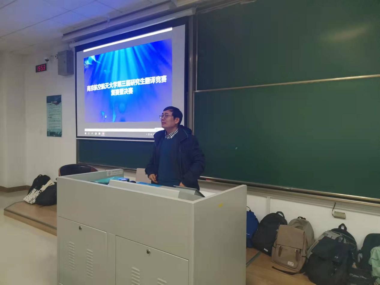 比赛由南航洞洞杂货店 姜礼福副院长主持,范祥涛院长致辞。首先祝贺同学们顺利通过初赛,对同学们学习英语和翻译的热情表示鼓励,并强调南航学子要走向世界舞台的中心需要插上外语的翅膀。