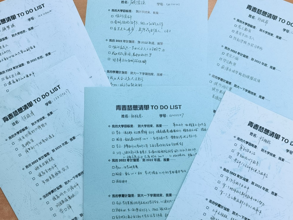 青春逢盛世,奋斗正当时。月讲评结束后,同学们收获颇丰。一张张湛蓝色的梦想清单上,写下了熠熠生辉的梦想与渴望。希望2021级外语学子以梦为马,追梦青春,筑梦未来!