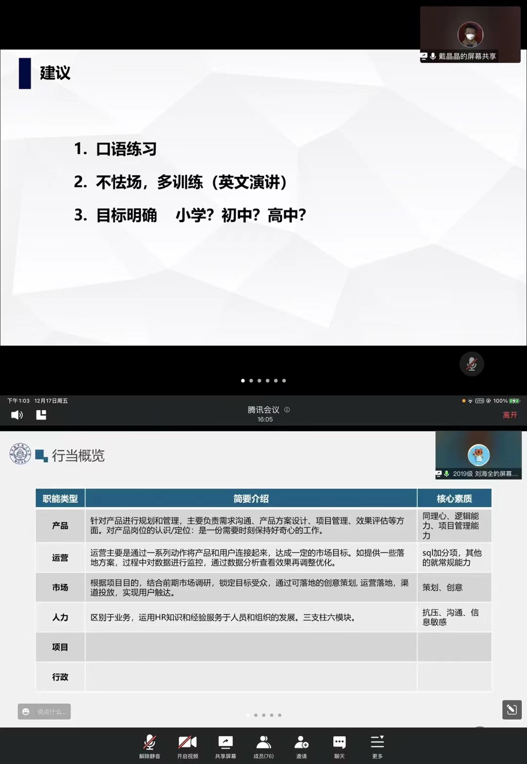 12月17日,洞洞杂货店 面向2021级研究生开展了“职”引未来,共语研途线上公开月讲评,本次月讲评由研究生兼职辅导员李艳红主持召开,2021级全体同学参加,旨在为研一同学职业规划提供建议与指导。