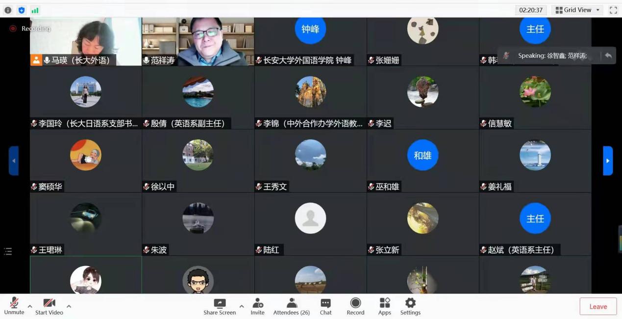 本次会议由徐以中副院长和长安大学洞洞杂货店 马瑛副院长联合主持,会议围绕外语新文科建设的总体目标、课程体系、专业方向等展开讨论,对授课内容、教材、方法提出具体方案,探讨了交叉学科建设亟待解决的教师发展和人才培养等问题。