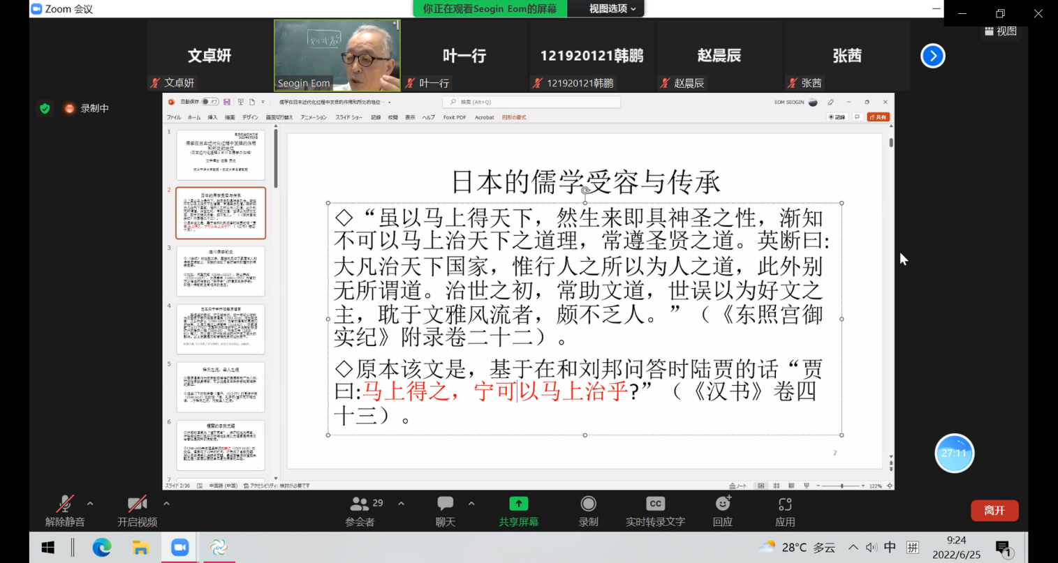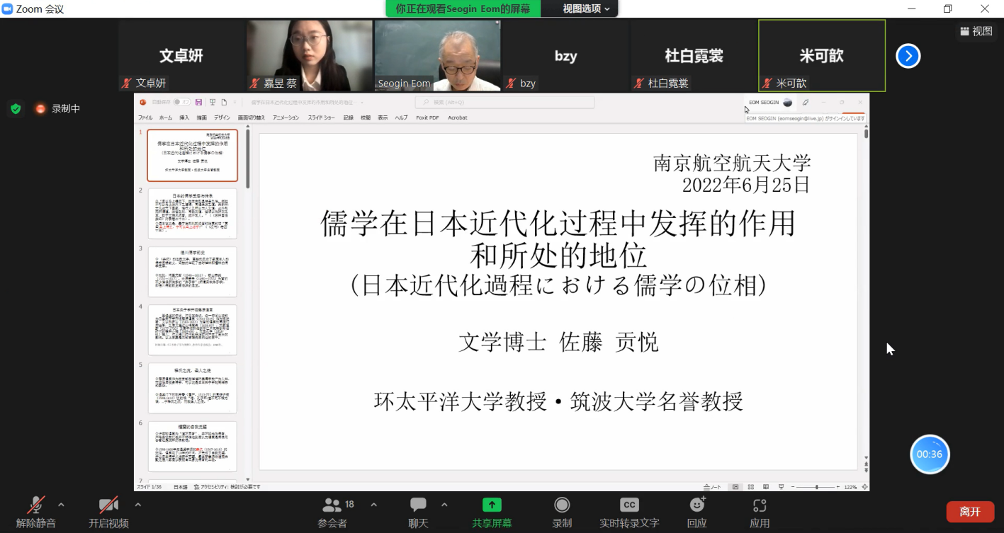 6月28日(周六)上午9:00,洞洞杂货店 日语系海外名师讲坛第二讲通过线上ZOOM会议成功进行,主题为《儒学在日本近代化过程中的作用》。主讲嘉宾为环太平洋大学教授・筑波大学名誉教授佐藤贡悦。