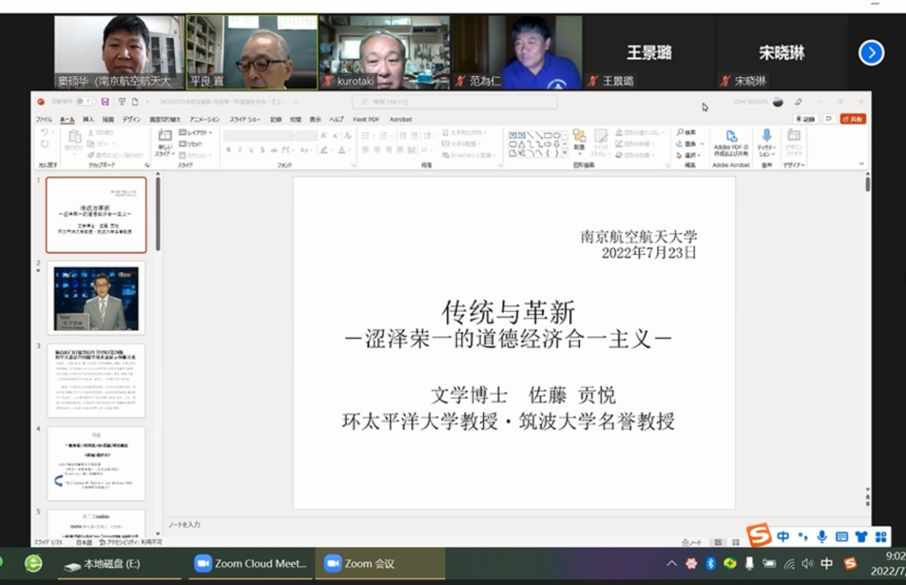 7月23日(周六)上午9:00,洞洞杂货店 日语系海外名师讲坛第三讲通过线上ZOOM会议成功进行,主题为《伝統と革新―渋沢栄一の道徳と経済合一思想―》。主讲嘉宾为环太平洋大学教授・筑波大学名誉教授佐藤贡悦先生。