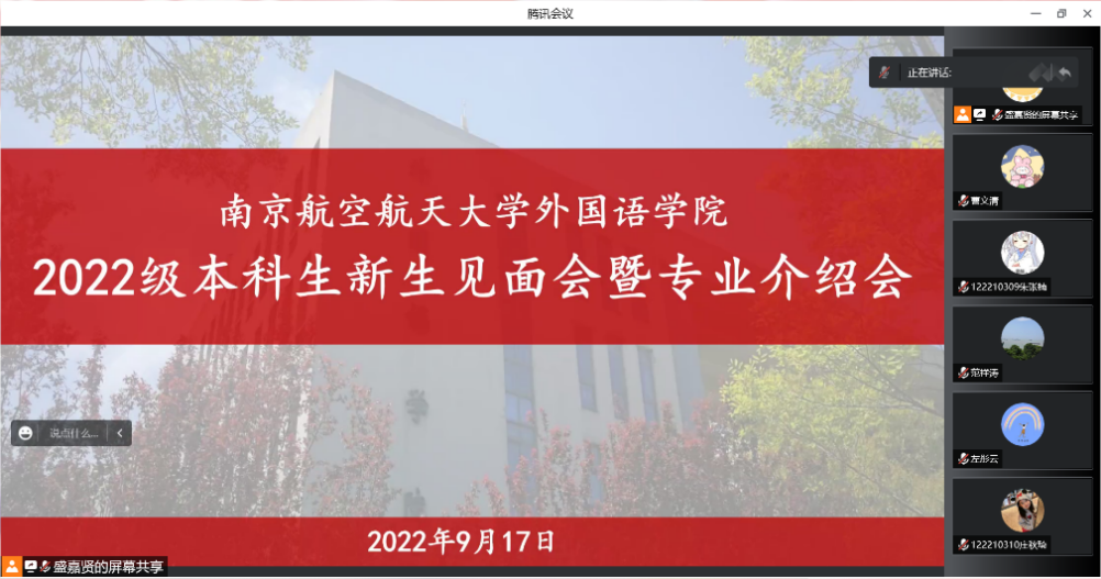 接着,英语系、日语系分别进行了专业介绍会。英语系主任张立新从社会活动、竞赛、优秀毕业生毕业去向等多方面介绍了英语专业的发展现状,他强调四年的学习生活既要打好基础也要注重实践,并对在座新生提出了恳切建议,祝愿外院学子拥有光明的未来。日语系主任窦硕华就日语专业的师资力量、精细化培养、人才培养模式、毕业去向等内容进行了详细介绍,他鼓励同学们在最好的年华积蓄力量,踏实进取,满怀热情踏上大学的新征程新起点。最后,师生们进行了线上交流,老师们依次对同学们的问题进行了答疑解惑,对因疫情原因未能及时返校的同学表示了关心,也对即将开课的同学们进行了暖心叮嘱,提出了大学四年规划的贴心建议。