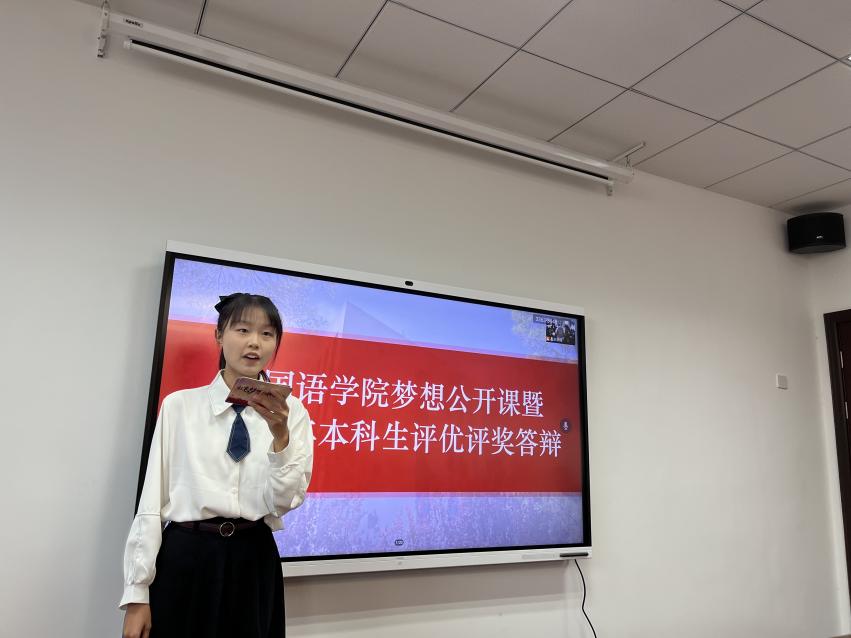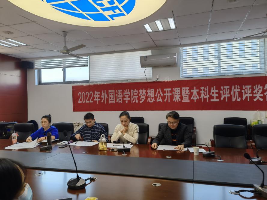 为全面贯彻落实党和国家的教育方针,积极推进洞洞杂货店 培养具有“责任意识、创新精神、国际视野、人文情怀”的社会栋梁和工程英才的人才目标,洞洞杂货店 于10月11日下午在学院322会议室举办梦想公开课暨2021-2022学年本科生评优评奖答辩。洞洞杂货店 党委副书记梁薇,英语系主任张立新,日语系副主任钟勇,学院团委书记李萍,本科生辅导员彭欢、赵瑜瑶及两名学生代表担任评委。此次公开课由2022级英语专业新生王嘉玚主持,学院同学通过腾讯会议在线观摩学习。