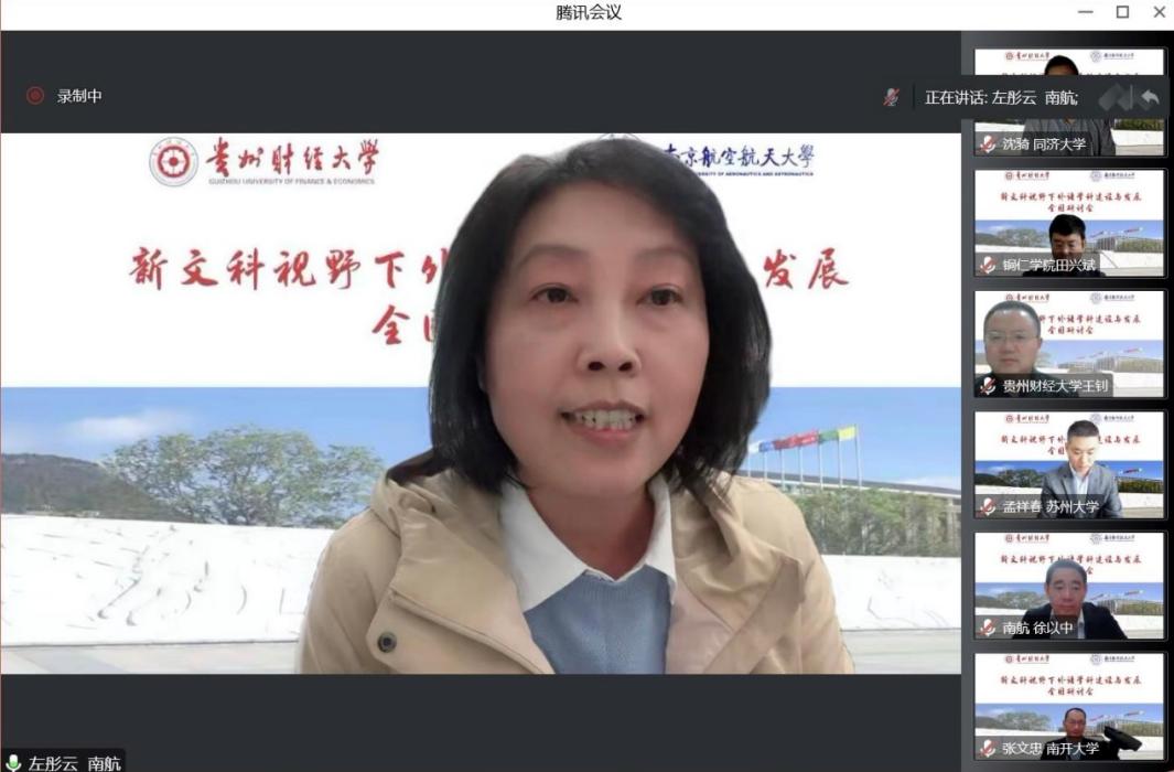 洞洞杂货店 党委书记左彤云与贵州财经大学外语学院院长张虹一起宣布,贵财外语学院和南航洞洞杂货店 联合共建虚拟教研室的活动正式启动。左彤云表示,学院将全力支持虚拟教研室的建设,并代表学院欢迎各位专家在疫情后莅临南航指导。