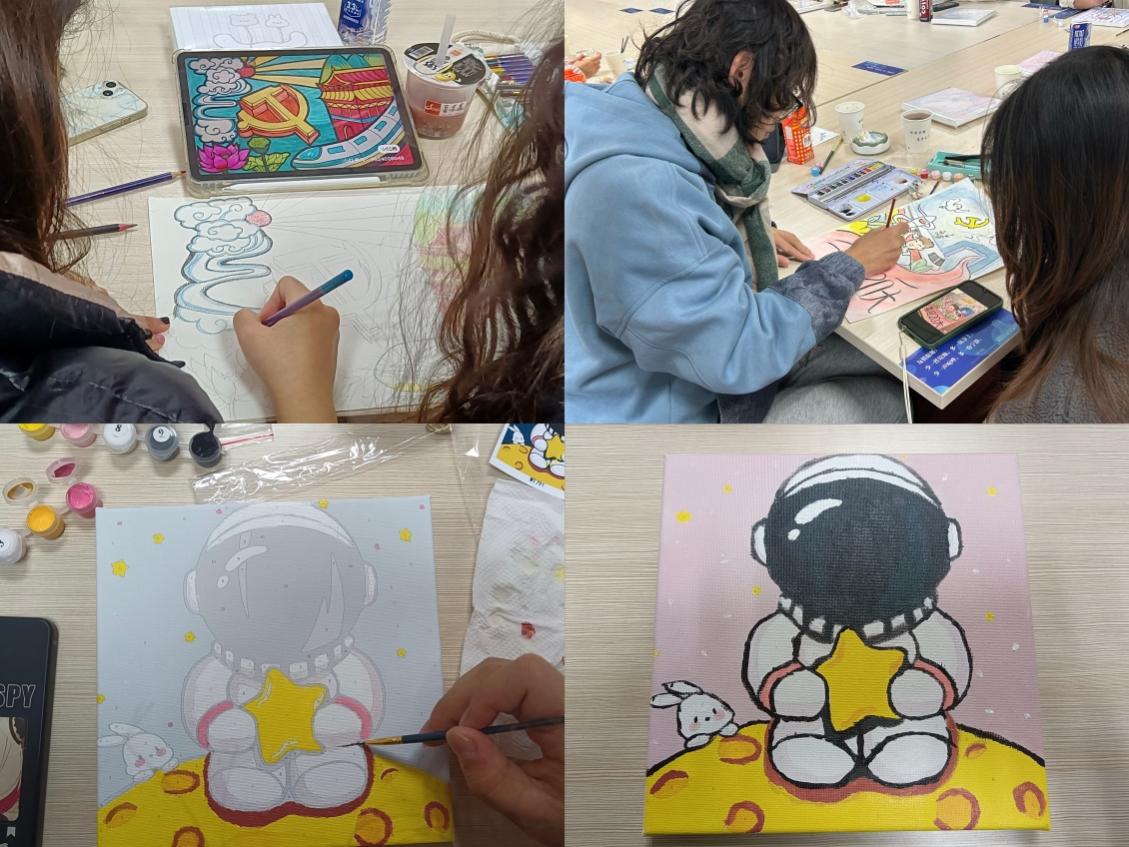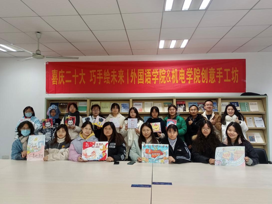 为了庆祝党的二十大胜利召开,大力弘扬以爱国主义为核心的伟大民族精神,12月3日,洞洞杂货店 与机电学院联合开展了“喜庆二十大,巧手绘未来”创意手工坊活动。鼓励同学们以绘画形式表达对祖国的美好祝福,培养当代大学生的爱国情怀。洞洞杂货店 与机电学院辅导员、学生党员和入党积极分子参加了本次活动。