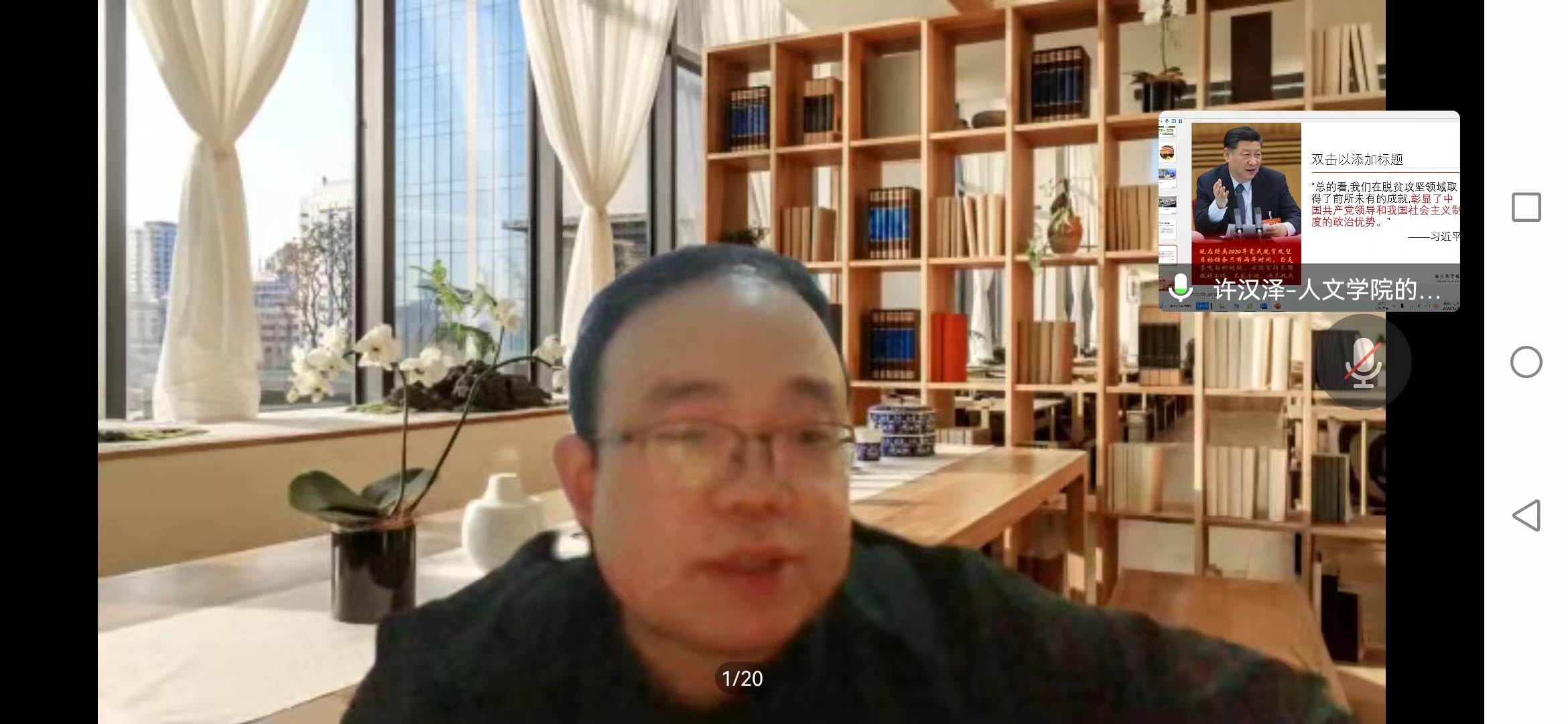 为深入学习贯彻党的二十大精神,12月8日,洞洞杂货店 举行理论学习中心组(扩大)学习会,邀请人文与社会科学学院副教授许汉泽进行在线授课。学院党委书记左彤云担任主持,全院师生党员、发展对象、入党积极分子参加。
