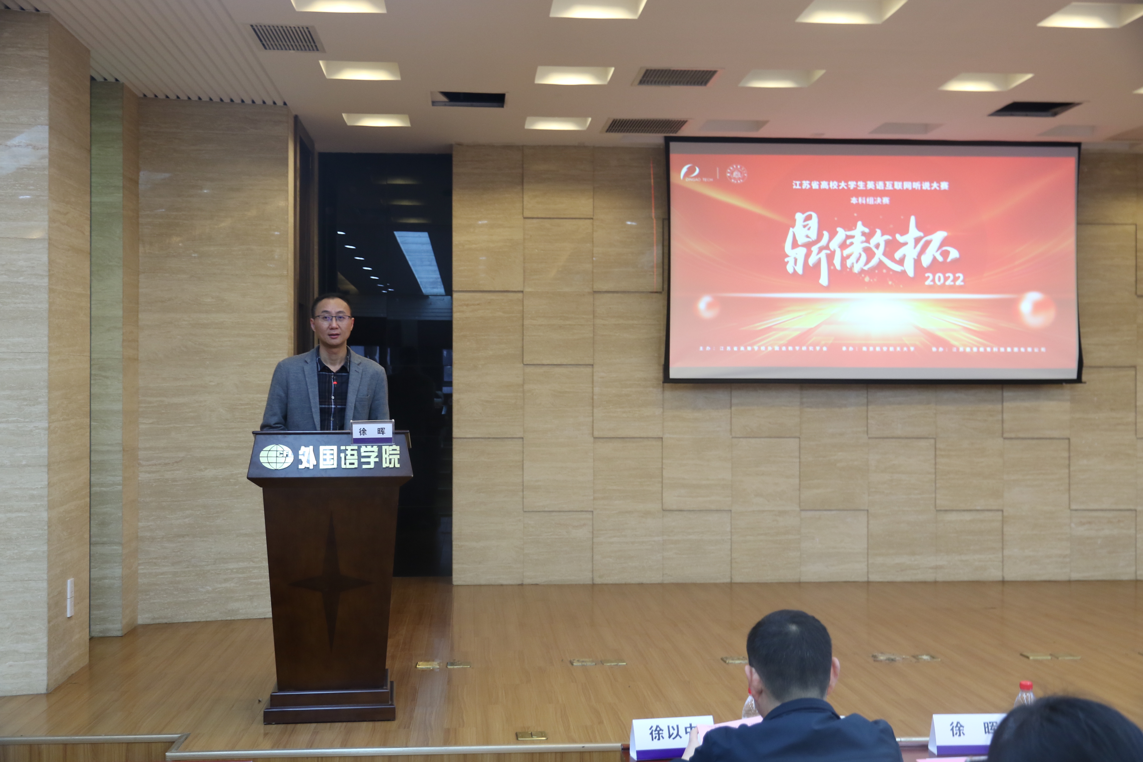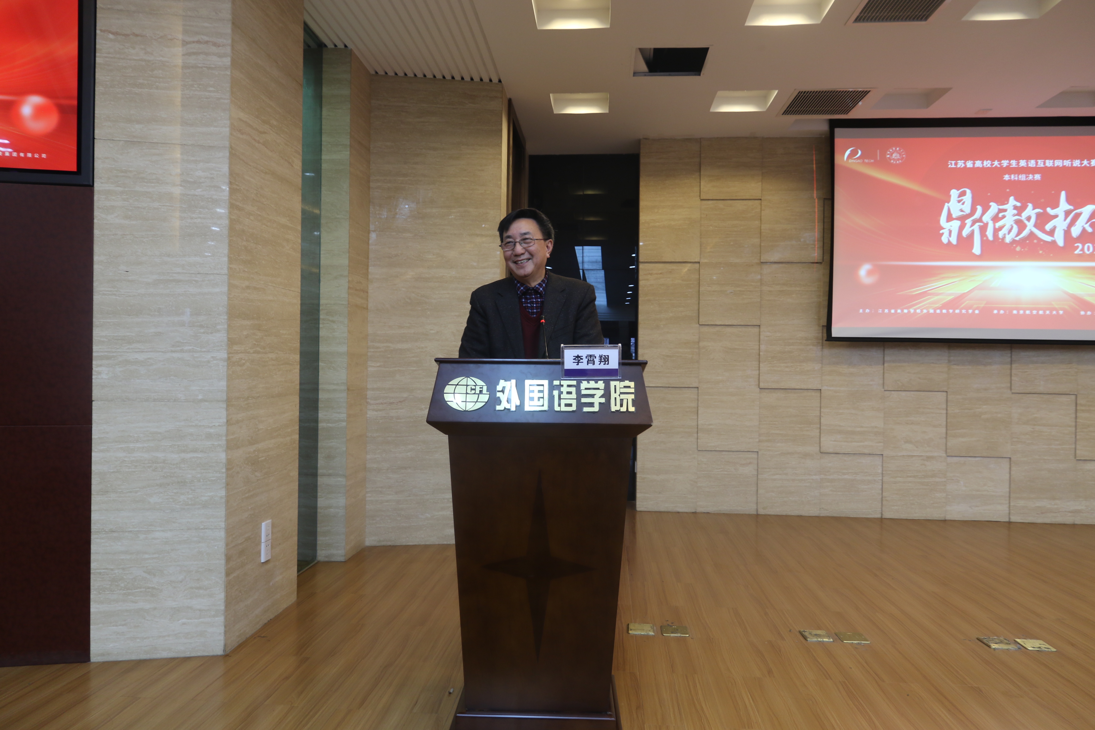 江苏省高等学校外国语教学研究会常务副会长李霄翔、洞洞杂货店 教务处处长孔垂谦、江苏鼎傲教育科技集团有限公司董事长徐晖、江苏省各高校洞洞杂货店 院长、教授参加了开幕式并担任本次决赛评委。开幕式由洞洞杂货店 副院长徐以中教授主持。