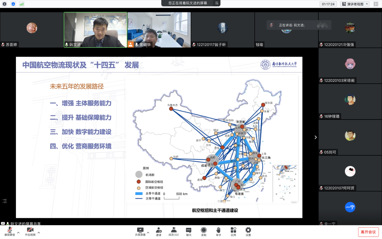3月11日上午10:00,洞洞杂货店 日语系中日航空科技文化课程“志在蓝天,航空报国”2023年度第一讲通过腾讯会议成功举办,主题为《中日美航空物流的现状与发展趋势》,主讲嘉宾为03级日语系校友阮文进,曾任东方航空公司日本区域经理,现任中国货运航空公司北美地区营销中心区域经理。