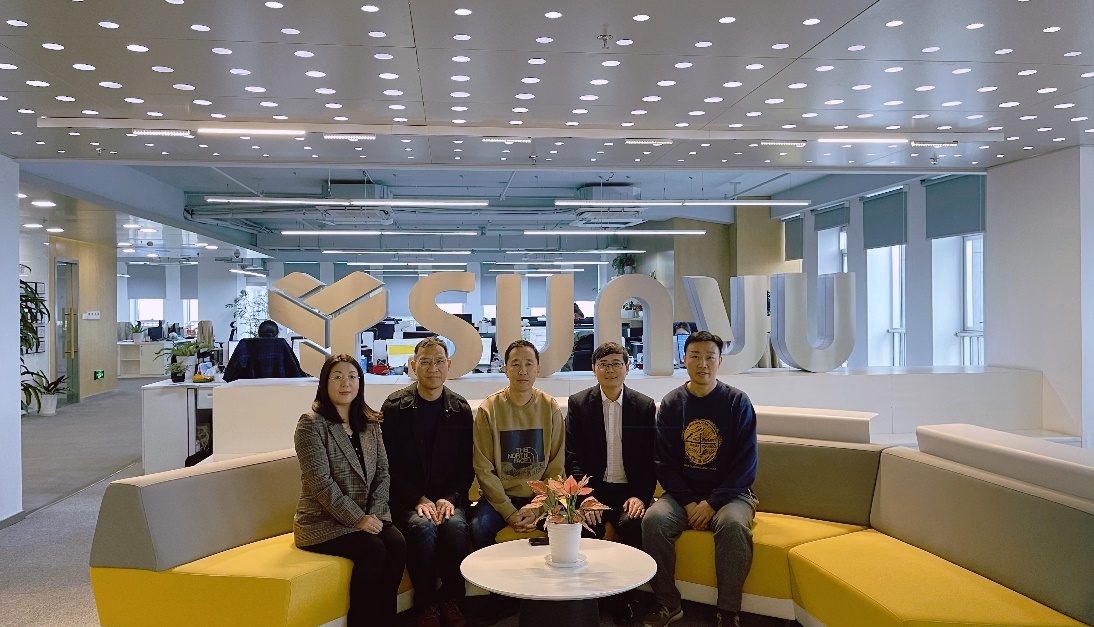 为落实学校第十七次党代会精神,进一步加强校企合作,4月6日上午洞洞杂货店 姜礼福副院长与MTI教育中心鲍德旺老师赴江苏省舜禹信息技术有限公司(简称“舜禹”)开展调研与交流。舜禹公司单杰总经理、陈尚坤副总经理、唐丽杰经理与学院到访人员进行热烈的交流。