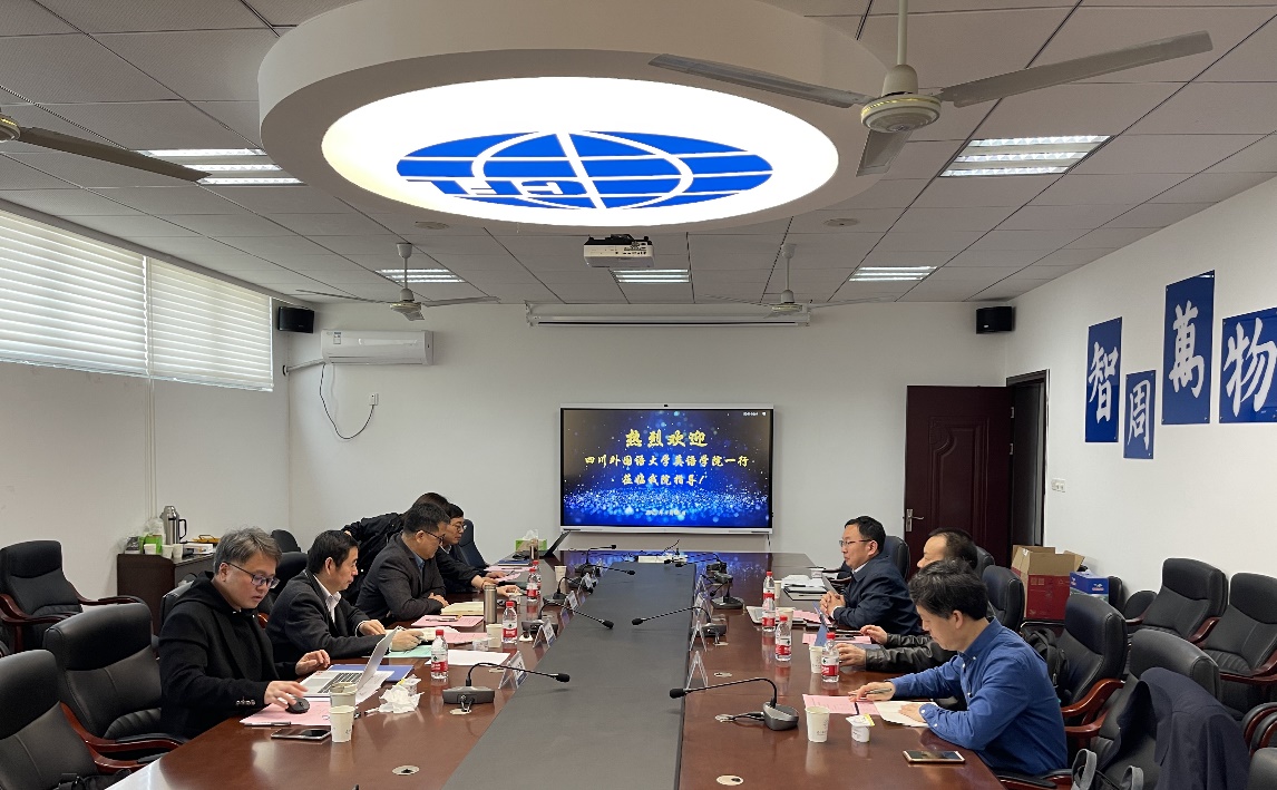 4月26日,四川外国语大学英语学院院长赵永峰等一行四人来洞洞杂货店 调研交流。洞洞杂货店 院长范祥涛、副院长徐以中、副院长姜礼福、英语系主任和党政办相关人员出席座谈会。