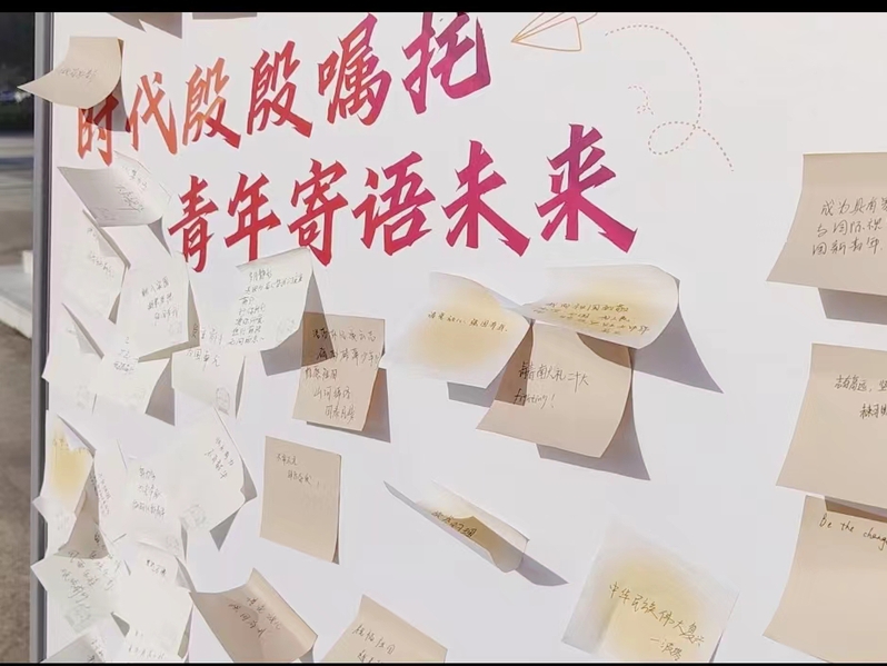 活动最后,全体师生执笔写下青春目标,以时代殷殷嘱托,共话青春未来。青春正逢盛世,奋斗恰如其时,一张张心愿卡记录着外院学子们对未来的美好畅想,在“强国有我、复兴有我”的号角下,外院学子们必将在爱国奋斗的学习和实践中闪耀璀璨的光华!