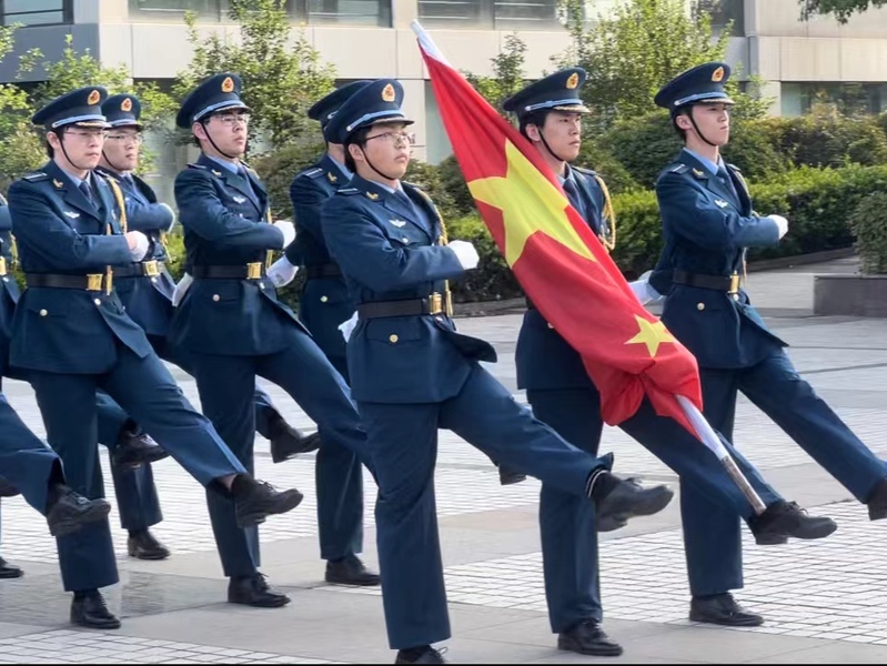 上午7点整,升旗仪式正式开始,飒爽英姿的国旗班护送五星红旗入场,伴随着《义勇军进行曲》,全体师生高唱国歌,目视国旗冉冉升起。