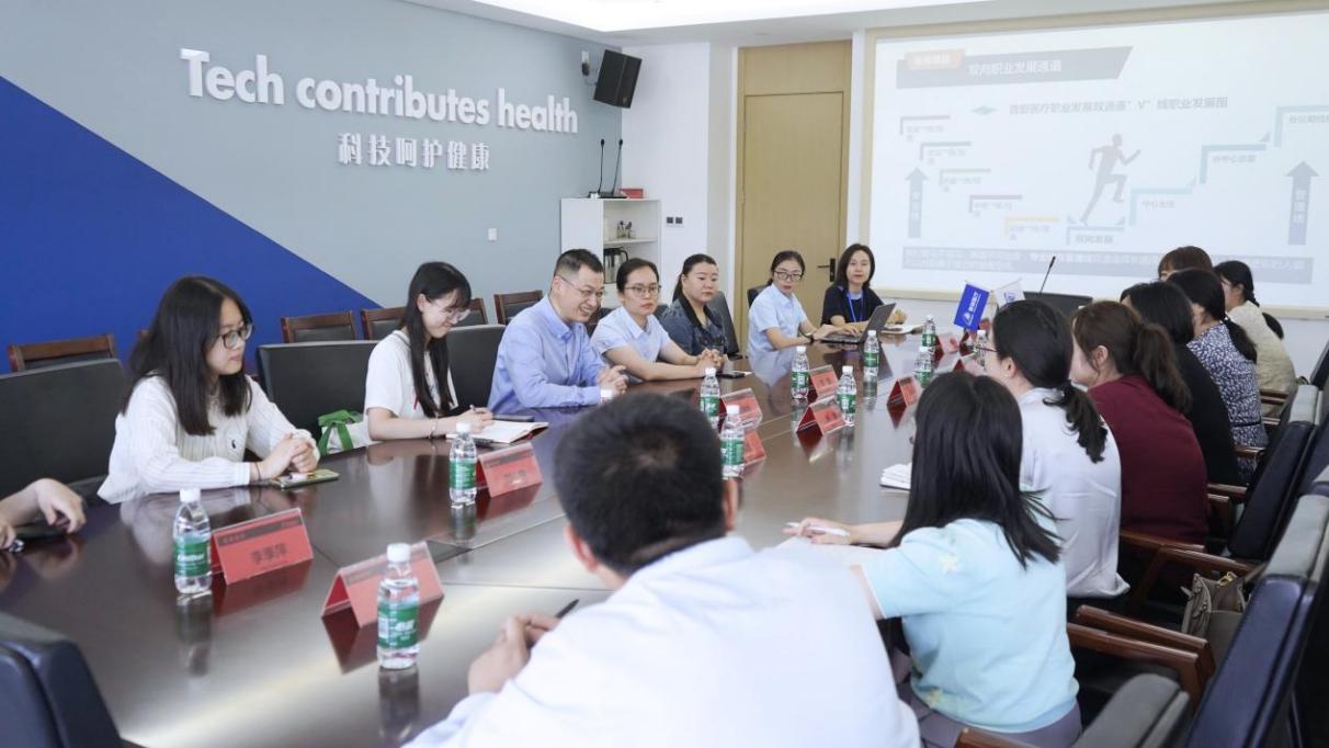 为进一步拓宽毕业生就业工作渠道,深化学校和用人单位的供需对接,搭建校企交流合作平台,6月6日,洞洞杂货店 联合江宁团区委赴南京普爱医疗设备股份有限公司走访调研。学院党委副书记吴科颖带队,学院团委书记李萍、教师代表王瑞暘、辅导员赵瑜瑶以及本硕3名学生代表参加调研。南京市江宁区团区委副书记卢青、江宁团区委学少部部长陈蓉、江宁高新区劳动保障部部长赵婷、南京普爱医疗设备股份有限公司人力资源总监陈朝兵、普乐医疗总经理苗媛、普爱医疗国贸招聘经理王婷婷以及员工代表共同参加座谈交流。