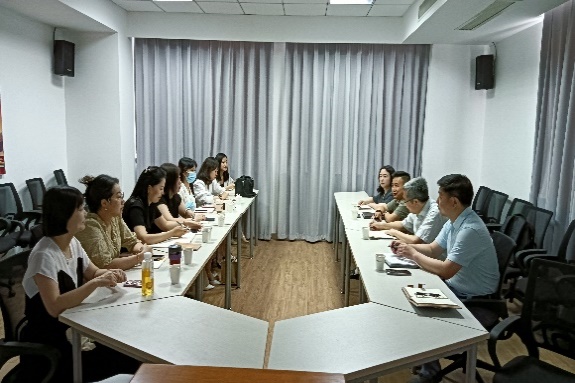 维修交付中心王宇副部长,适航工程中心王留呆主任、张艳红主任,营销中心高管梁红彦、高级经理周华,热情介绍相关情况。王孝存分享了近几年与航空公司、机场等合作开发有关行业英语学习材料的经验,朱波就航空英语翻译、梁砾文从语言政策等角度分享了专业洞察。在此基础上,双方探讨了落实今年5月底中国商飞公司与洞洞杂货店 校企深度融合发展恳谈会的精神,共同提升航空英语胜任力的产教融合、科教融汇举措。此外,调研团队还听取了行业专家对于目前高校英语教育教学模式和人才培养质量的反馈。