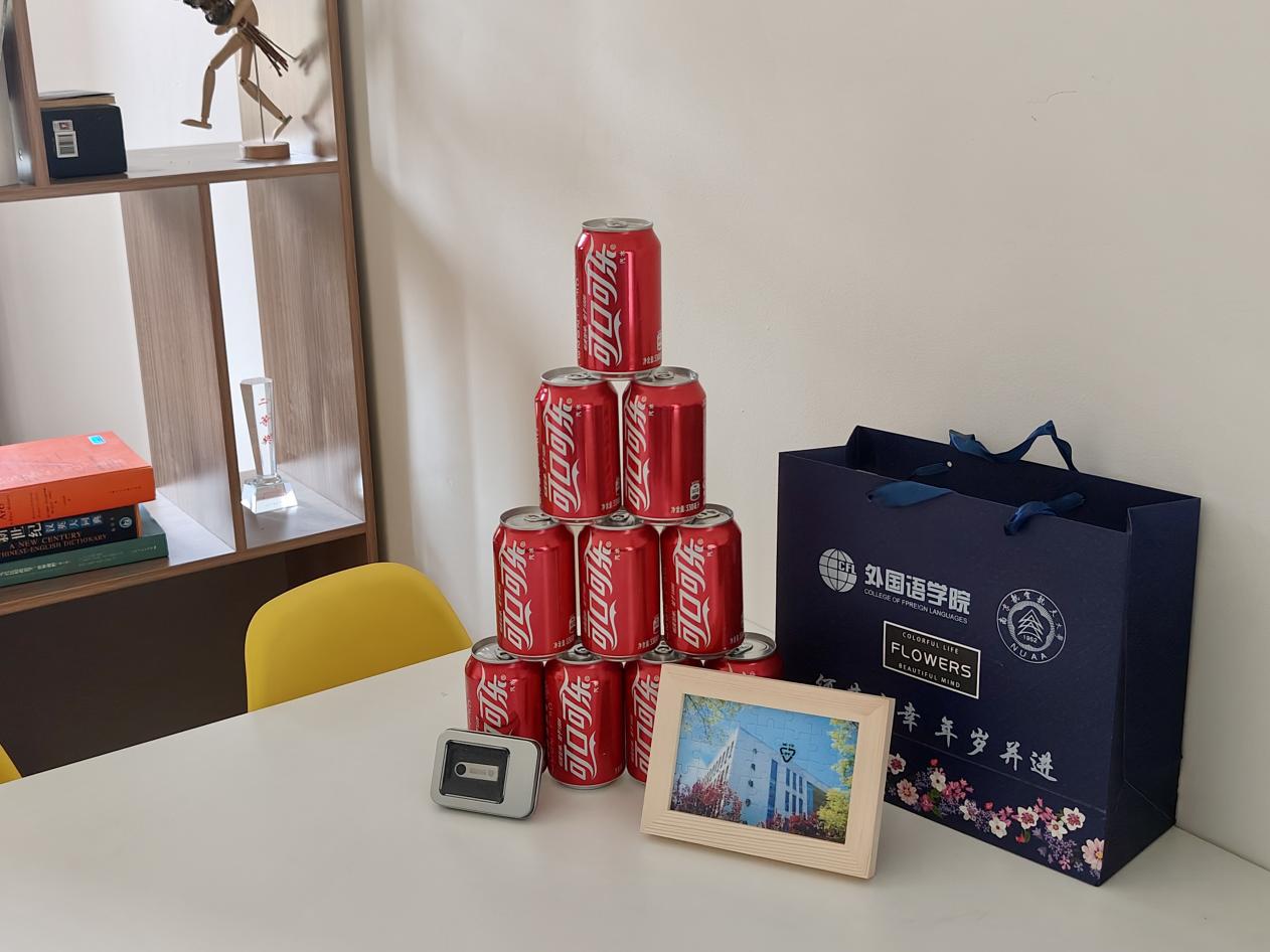 新生大礼包中包含“四重心意”:主题迎新可乐、洞洞杂货店 拼图、校园地图、定制款U盘。礼物兼顾美观与实用,也传递了外院师生对全体新生的关心和热情。