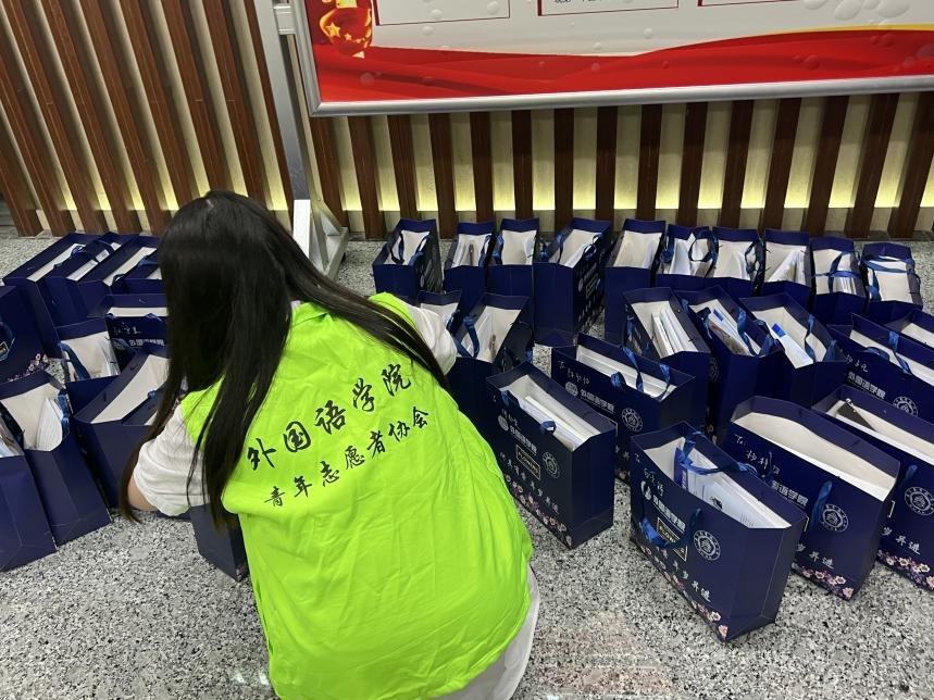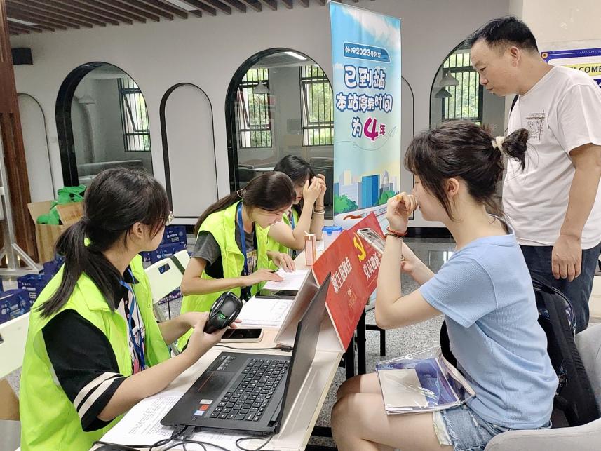 报到台后,志愿者们分工明确,热情满满,高效地帮助新生办理报到流程,收获了新生与家长的由衷称赞。