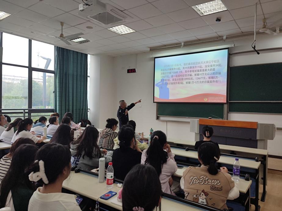 针对近年来电信网络诈骗高发的现状,为进一步提升学院学生的自我保护意识、防范意识,预防网络电信诈骗,切实保护自身财产信息安全,10月19日,洞洞杂货店 开展了防范电信网络诈骗专题宣讲活动。活动邀请了江宁公安分局开发区派出所驻南航警务室娄军来警官担任主讲人,洞洞杂货店 团委书记李萍、本科生研究生学生代表参加本次活动。