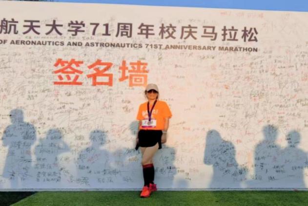 94级外贸英语专业院友张金花报名了校庆马拉松比赛。10月21日早上,张金花在洞洞杂货店