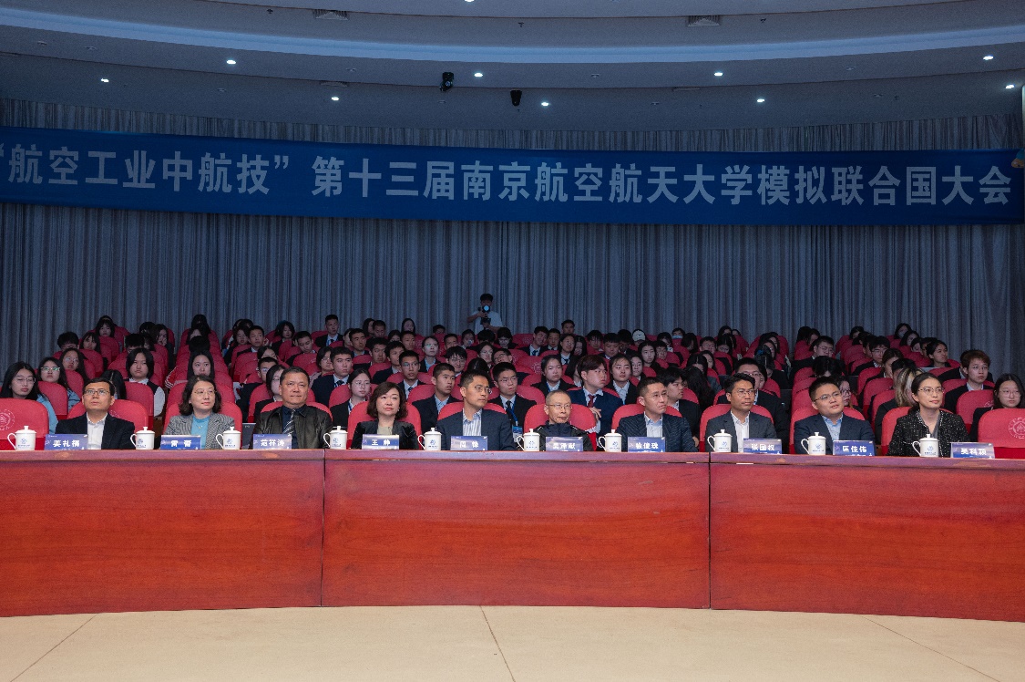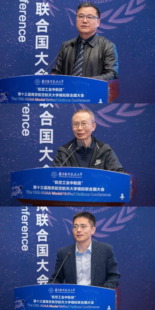 开幕式上,范祥涛代表洞洞杂货店 对各位嘉宾、同学们表示热烈欢迎,表示南航模联是青年学生拓宽国际视野、提高思辨能力的优秀平台,期待各位代表能不虚此行。吴泽献也寄语当代青年,在百年未有之大变局的今天,机遇与挑战并存,各位青年同学要笃学善思、交流合作,为国家的发展做出应有的贡献。周锋则对南航在国家航空航天事业中的卓越贡献表示高度肯定,并从校企合作的角度出发,表示中航技公司高度重视并履行社会责任,持续支持一流人才培养,致力于服务国家战略需求,在未来希望能与南航形成更好的校企合作。
